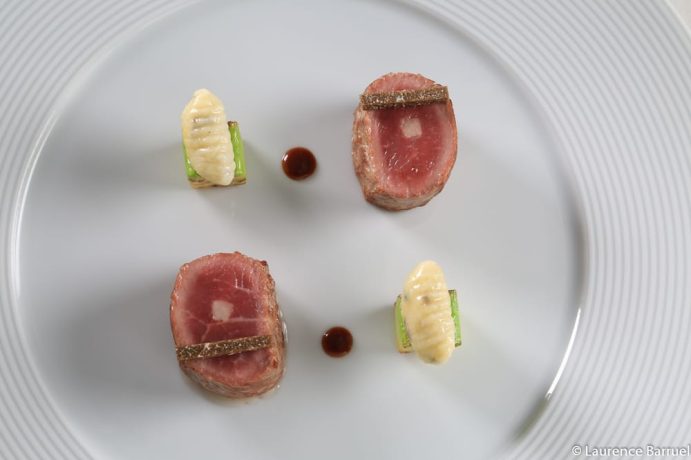 Bruno Oger, the chef of the “Villa Archange” left his native Morbihan for the sun on the French Riviera, after having studied with Michelin-starred chef Georges Blanc in Vonnas. The cuisine of his restaurant is delicate, creatively executed with almost scientific precision. Thus discover beautiful associations such as abalone on the island of Groix rubbing prickly artichokes or Breton lobster married to andouille Guéméné.