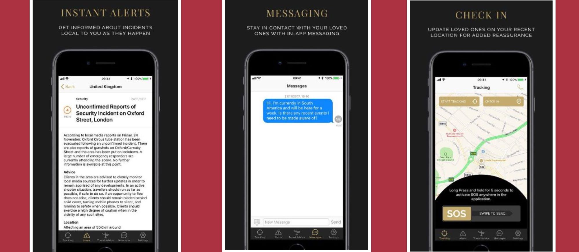 The app includes an SOS panic-button which when swiped sends an instant message to this team who are trained to deal with every type of emergency and will immediately act to get you and your family to safety. If this means providing immediate, on-the-ground, close security protection in response to a threat to you or your family, or evacuating you straight home away from a natural disaster zone, they will arrange this – all at no extra cost.