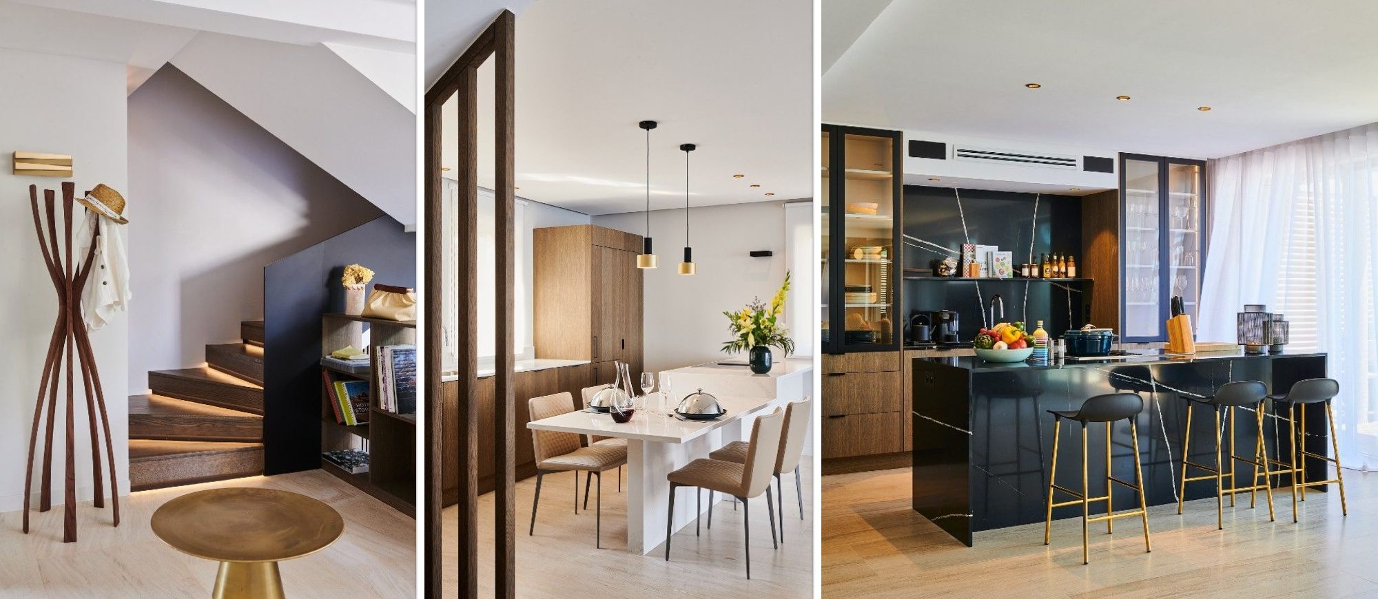 Level Three. The third and fourth floors each offer the intimacy of a very private penthouse, with one king size room with en-suite bathroom each. Living room with open plan kitchen. Double bedroom with en-suite bathroom.