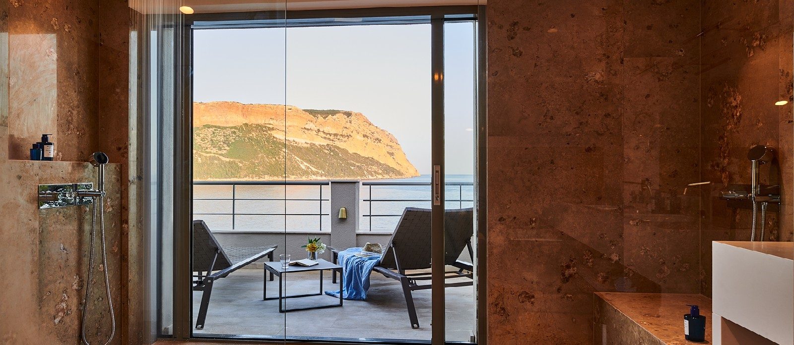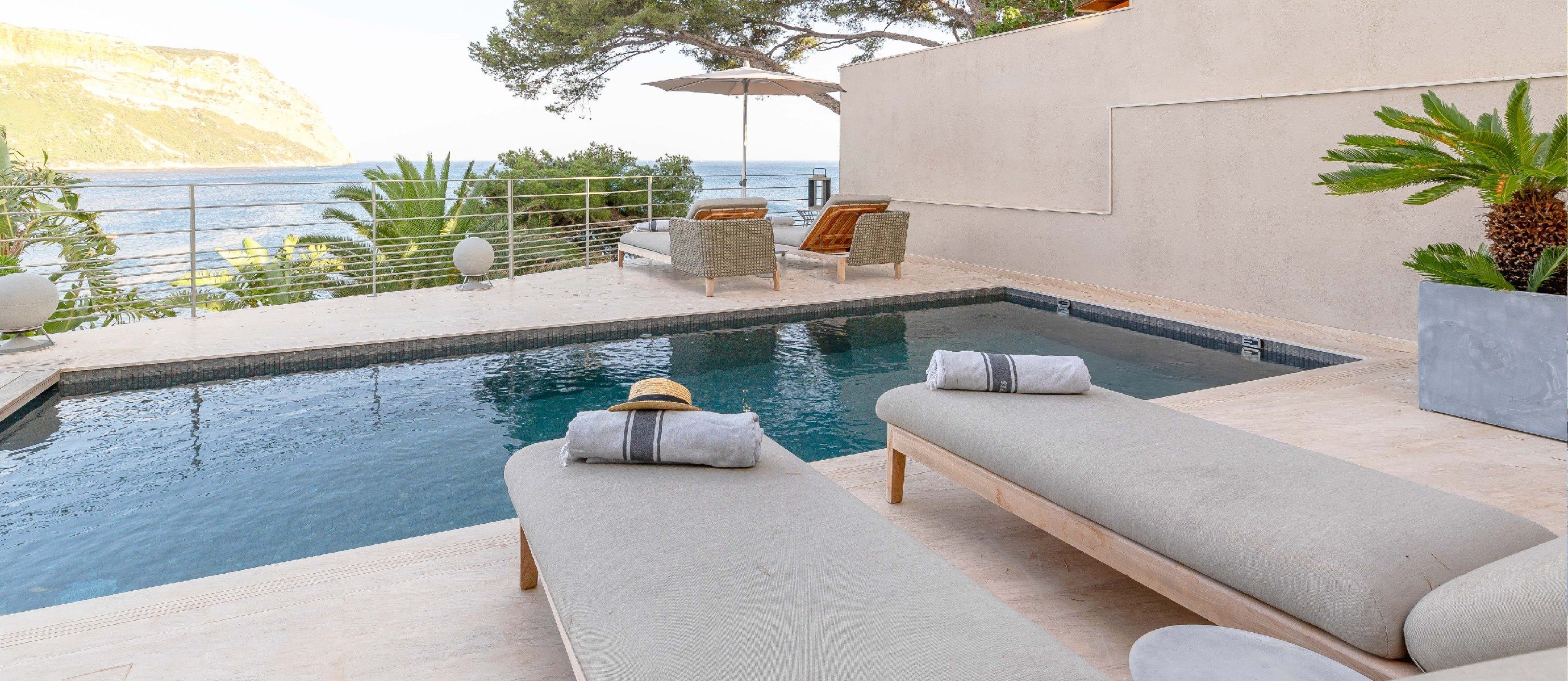 Cassis Edge is a haven tucked away, a few minutes walk from the harbour, with breathtaking views of the Calanques and the Mediterranean. Spread on four levels the villa’s architecture blends in with the rock against which it was built. The contemporary interiors of the villa embrace simplicity and minimalist elegance, while showcasing the most noble local materials. With its four bedrooms, all conceived as private suites, the villa can accommodate up to 8 people.