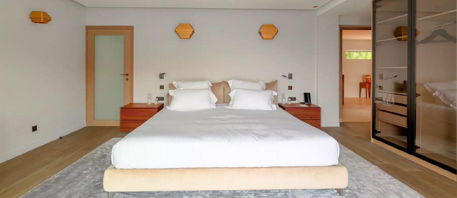 Level Four. Double bedroom with terrace, with en-suite bathroom, with double walk in shower with terrace. Pool.
