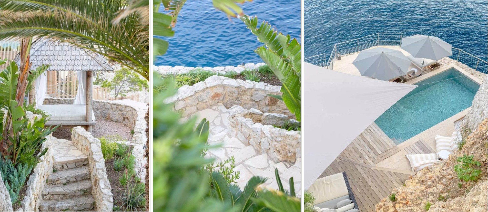 A hideaway built into the rocks a few minutes walk from the harbour