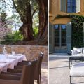 The main terrace of the château offers (in-)formal dining locations for different situations – shaded under the plane trees, in full sunlight between the fountains, in the evening shade of a large cypress, around the wood-burning pizza oven – depending on the weather and the guest preferences.