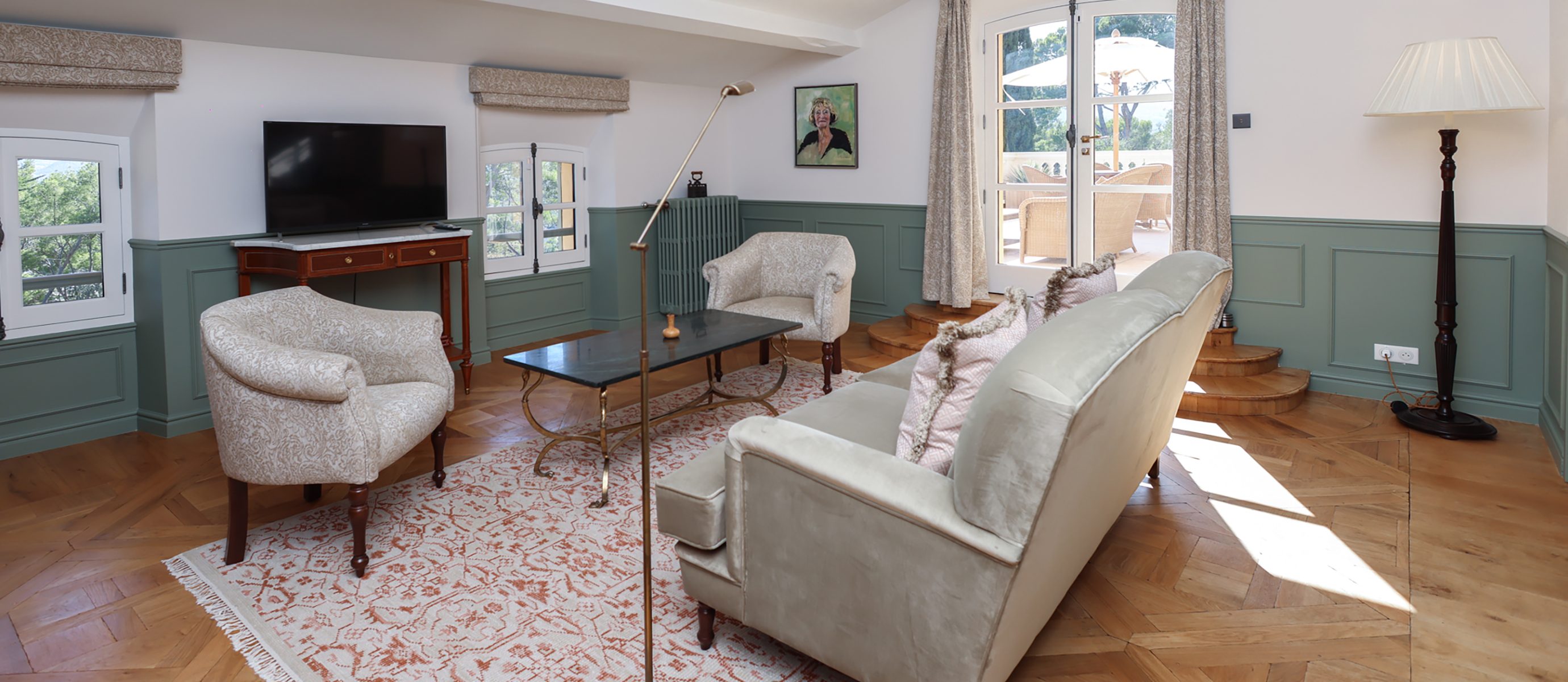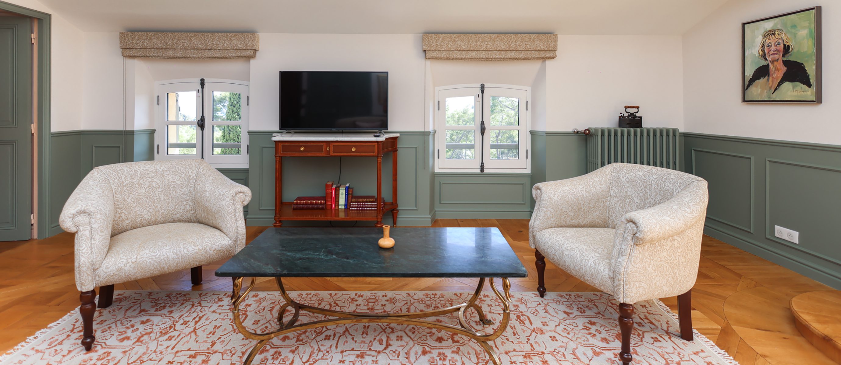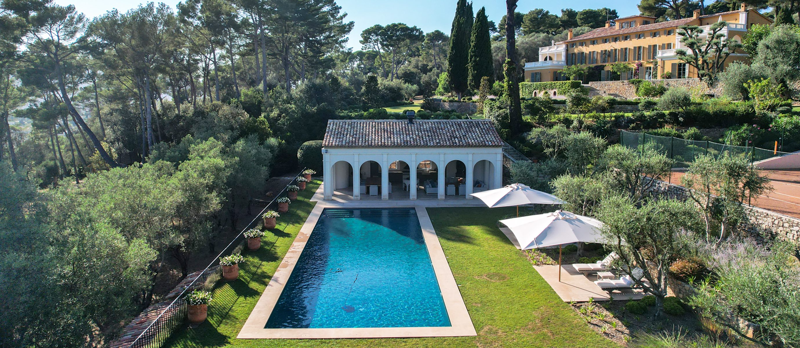 Very recently, the château has been completely renovated to bring it up to modern luxury standards. This cocoon of prestige and privacy extends over hectares of classified forest, olive groves, and Mediterranean flowerbeds. A haven of peace just a stone’s throw from Cannes’ sunny beaches, this residence offers absolute privacy.