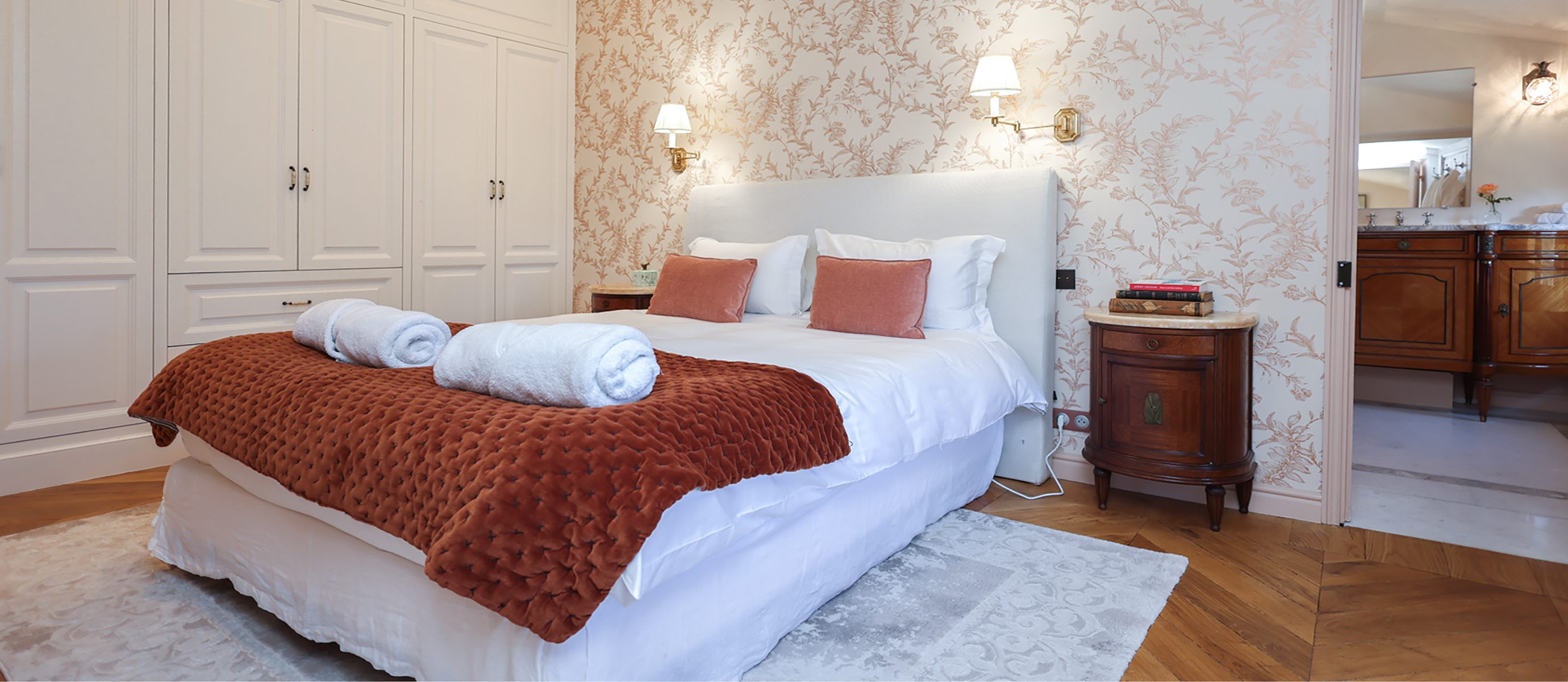 - The 3rd master suite offers a 30m2 terrace, and a 60m2 indoor living space, split into a living room, a fully equipped kitchen, a bedroom, and a bathroom. This suite can also be combined with the romantic 25m2 tower bedroom, offering a panoramic view over the entire property. It includes a bedroom, and an en-suite bathroom, to form an 85m2, 2-bedroom suite.