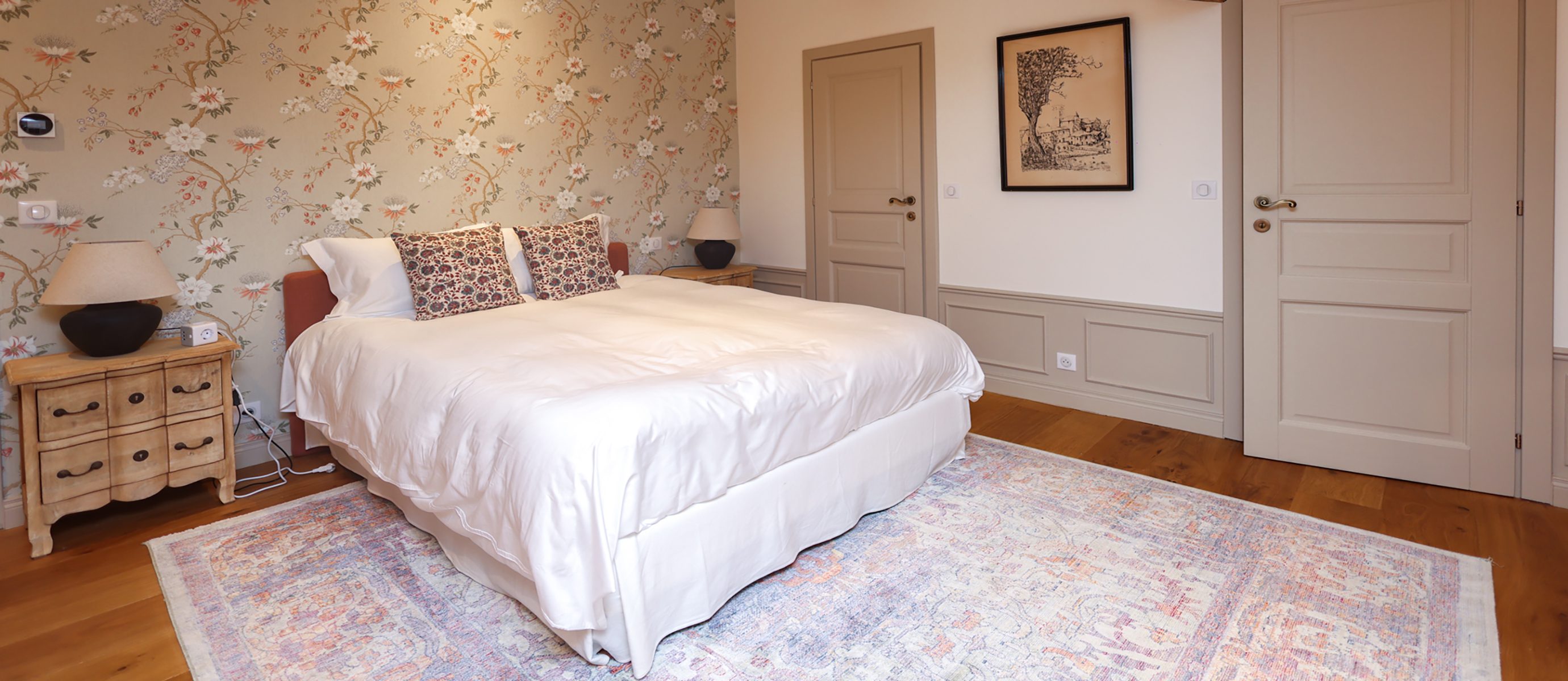 As soon as you walk through the door, you have the impression of entering a fairytale world. The walls are covered in pale pink wallpaper adorned with beautiful, delicate flowers that seem to have bloomed straight from an enchanted garden. The pastel colors evoke an infinite softness, and the soft light that bath the room reinforces this magical atmosphere.