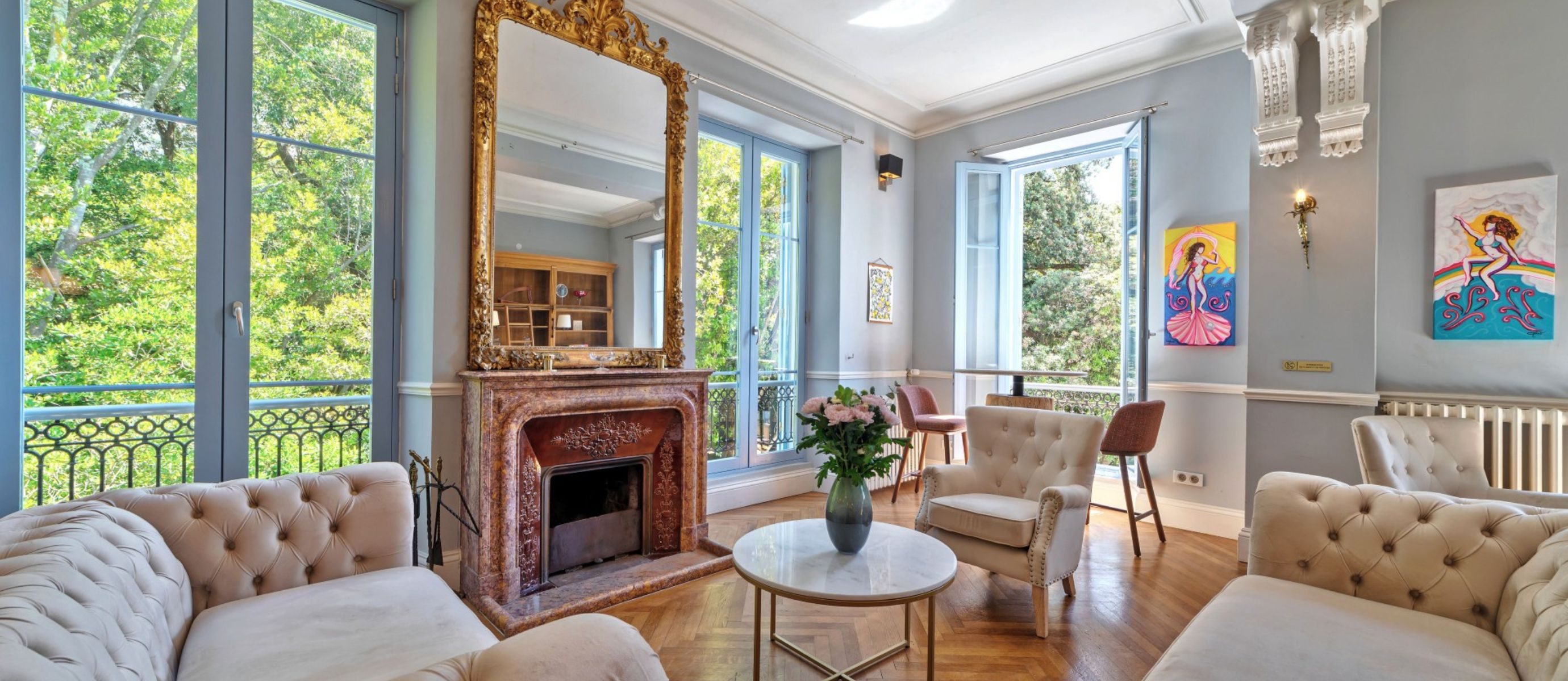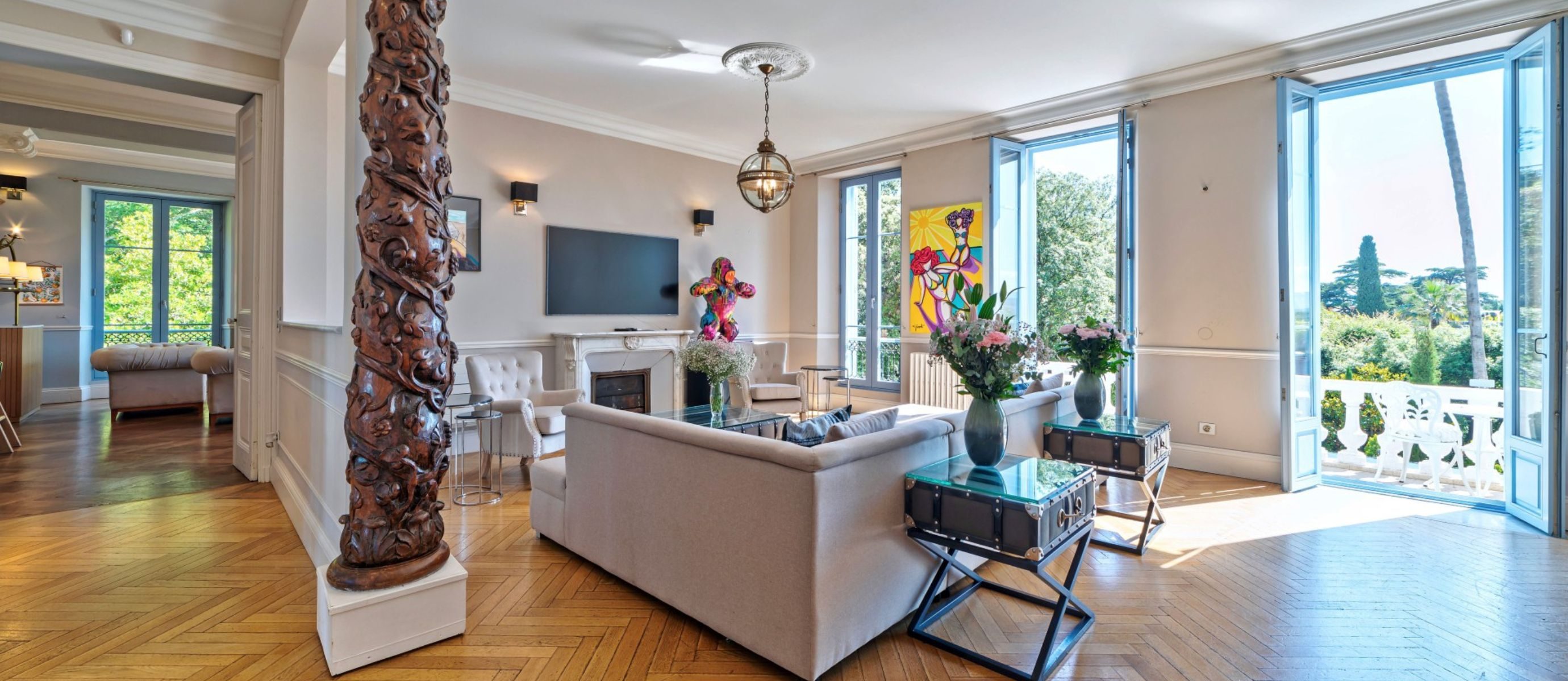 Located within a private domain, this peaceful haven is 1km from the beaches, and 1.8 km from the renowned Palais des Festivals de Cannes
