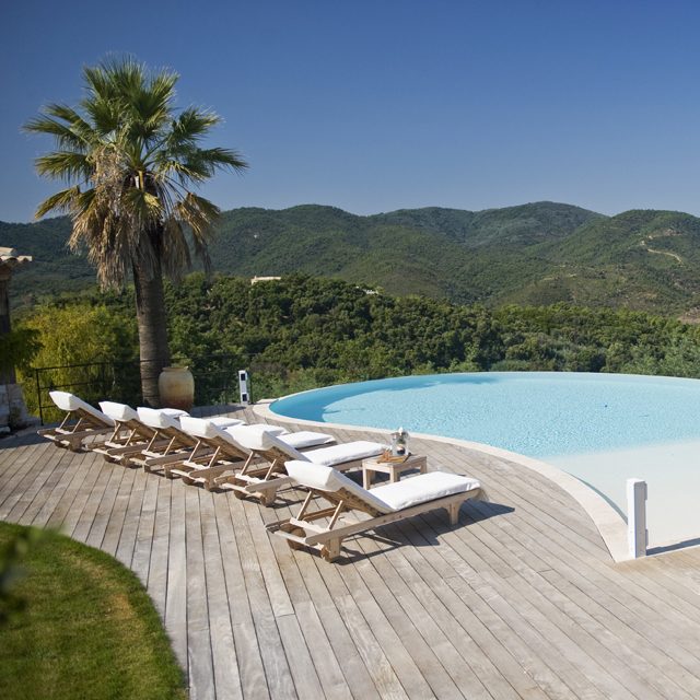 This magnificent house is the jewel of the Domaine de l’Esterel. A quite particular attention was brought to the choice of the furniture and the decoration. Its volume makes it the most spacious of the 3 villas. With its 1000 square metre livable, it has the majestuosity of a Provencal castle.