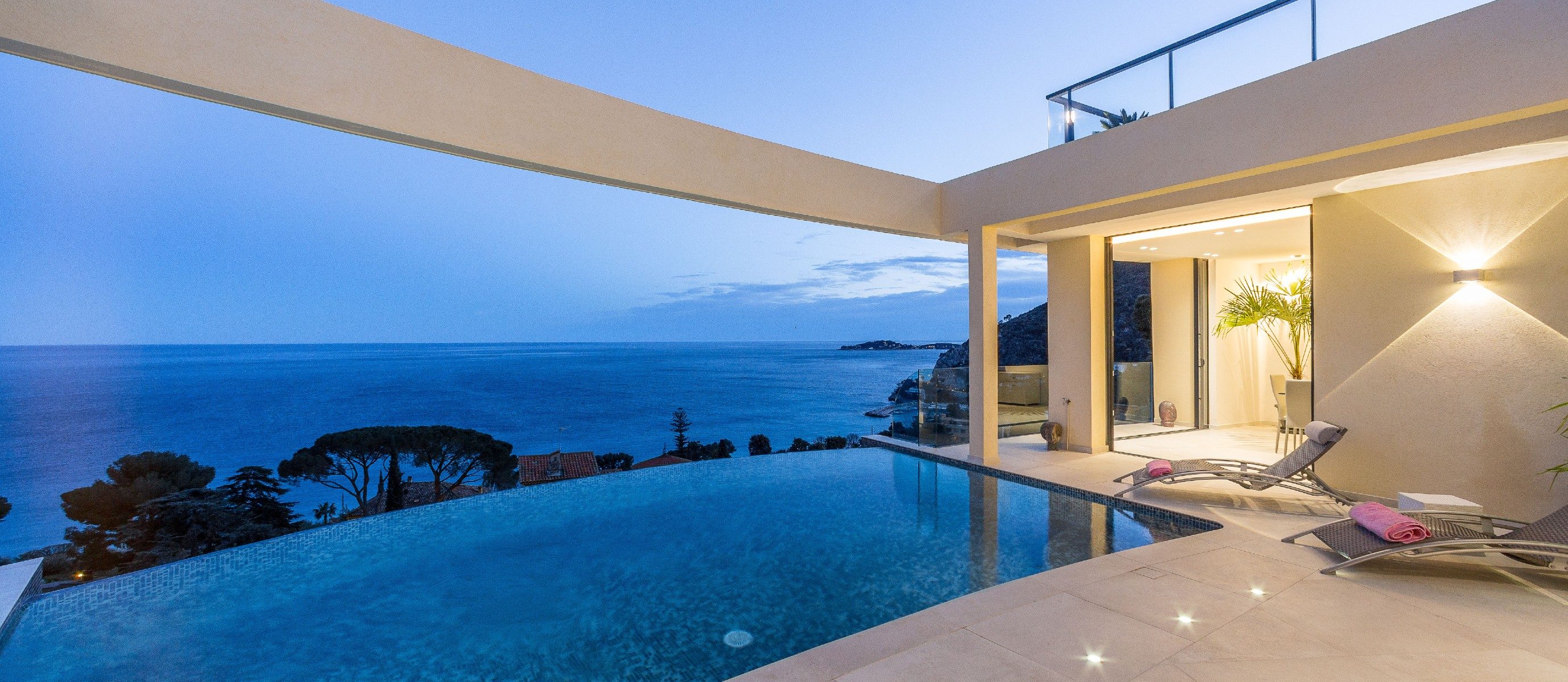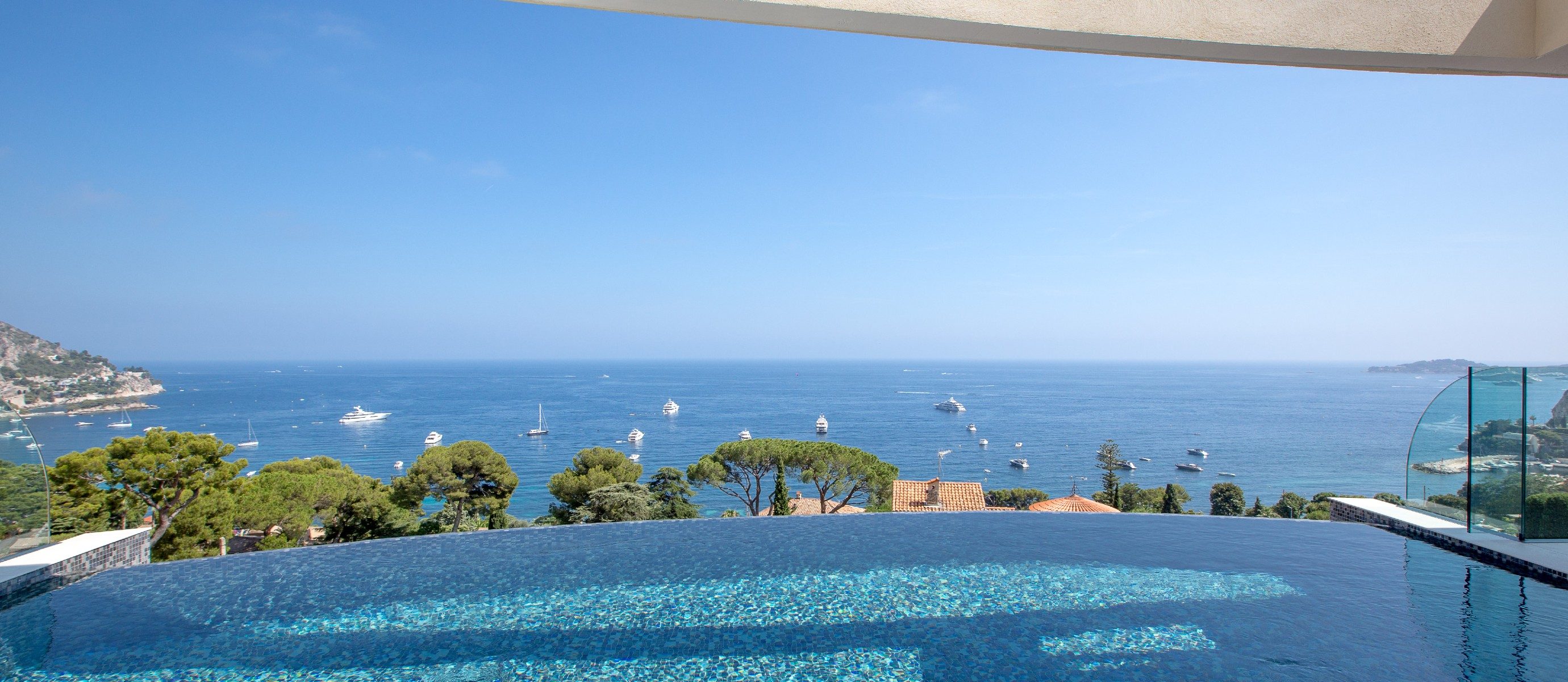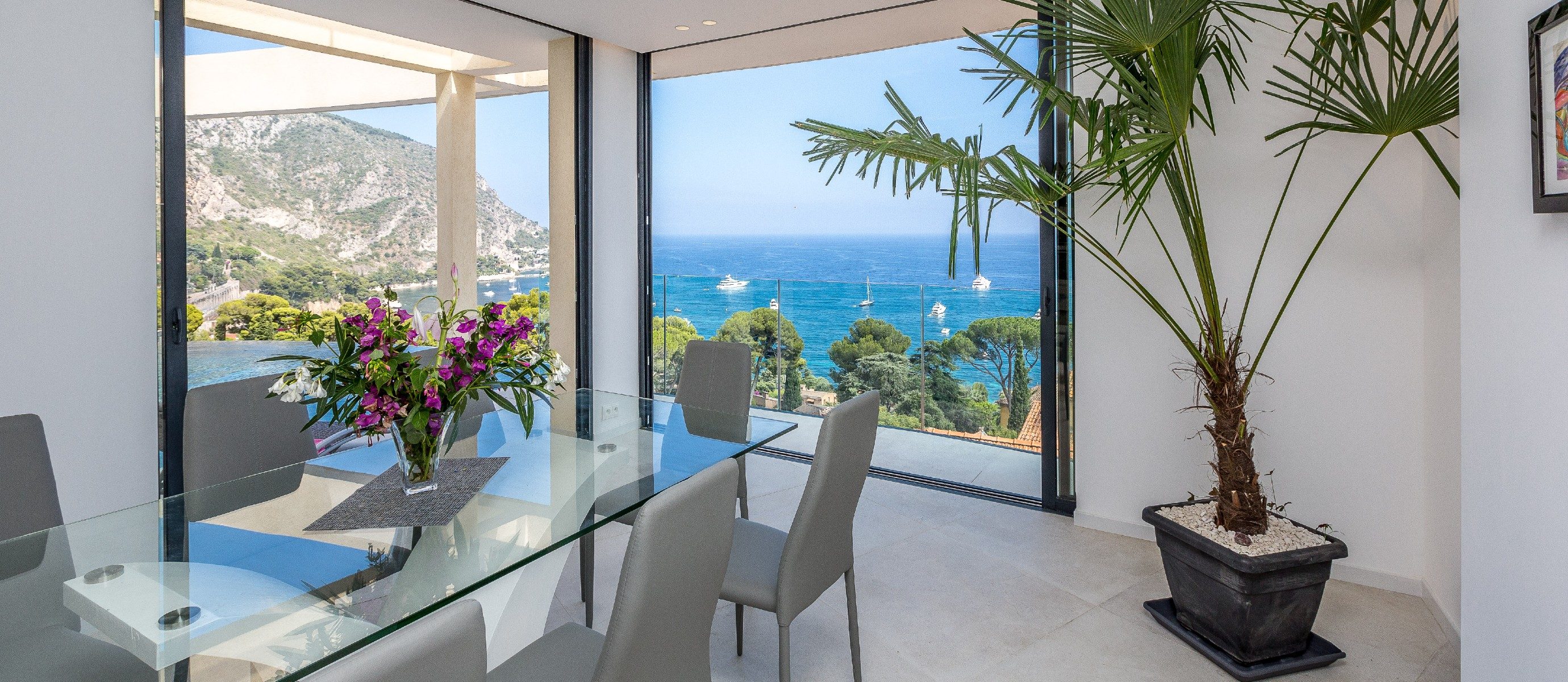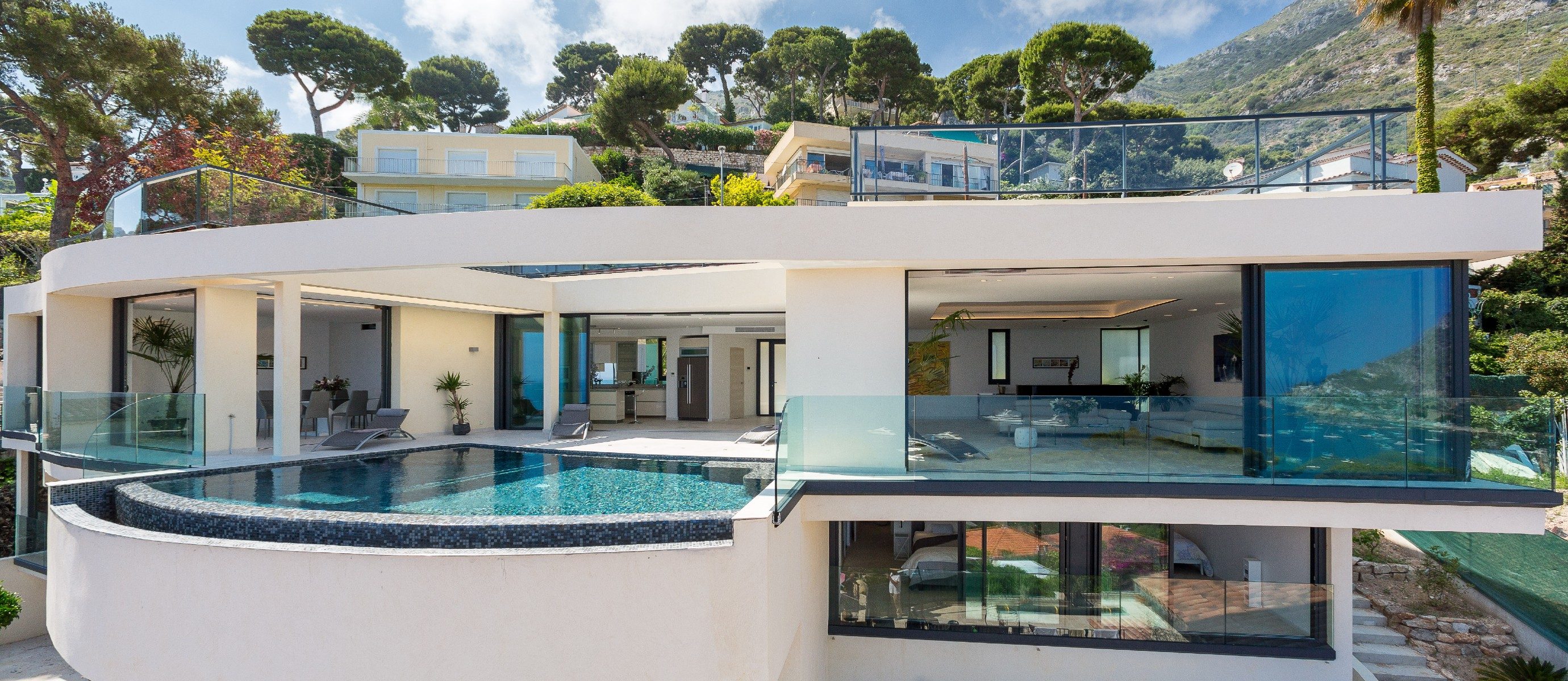 Newly built contemporary villa overlooking the bay of Eze, with unobstructed sea views, a few minutes walk to the beach