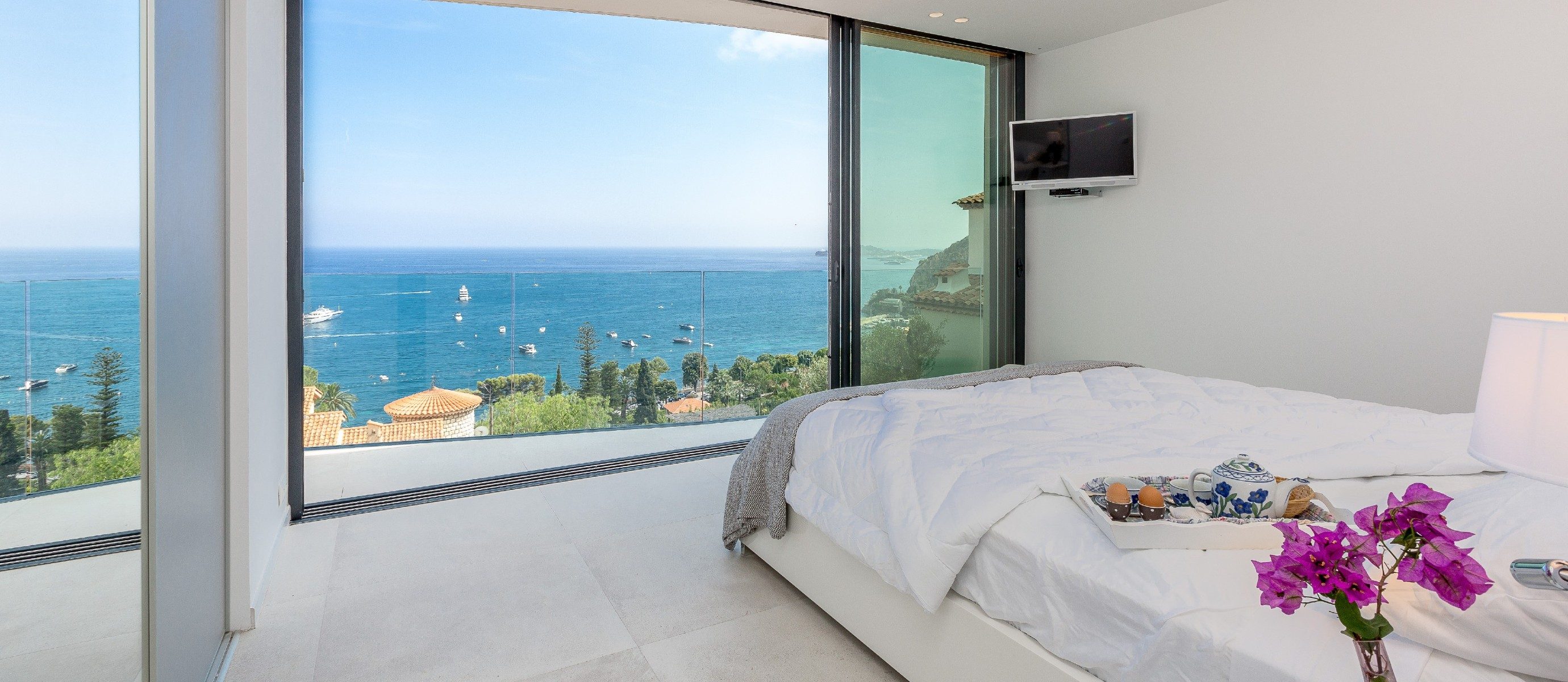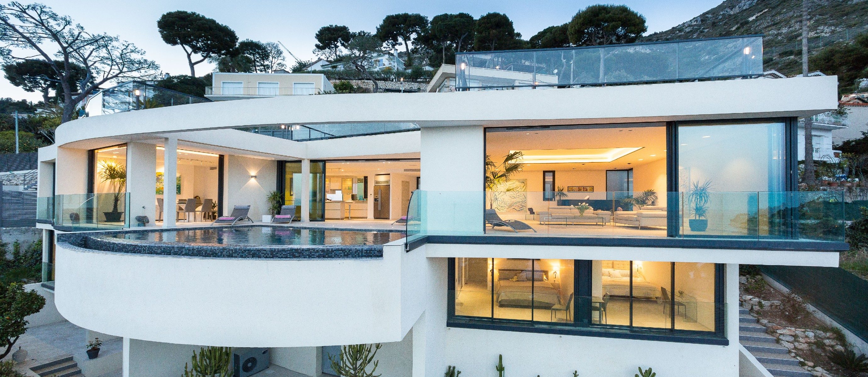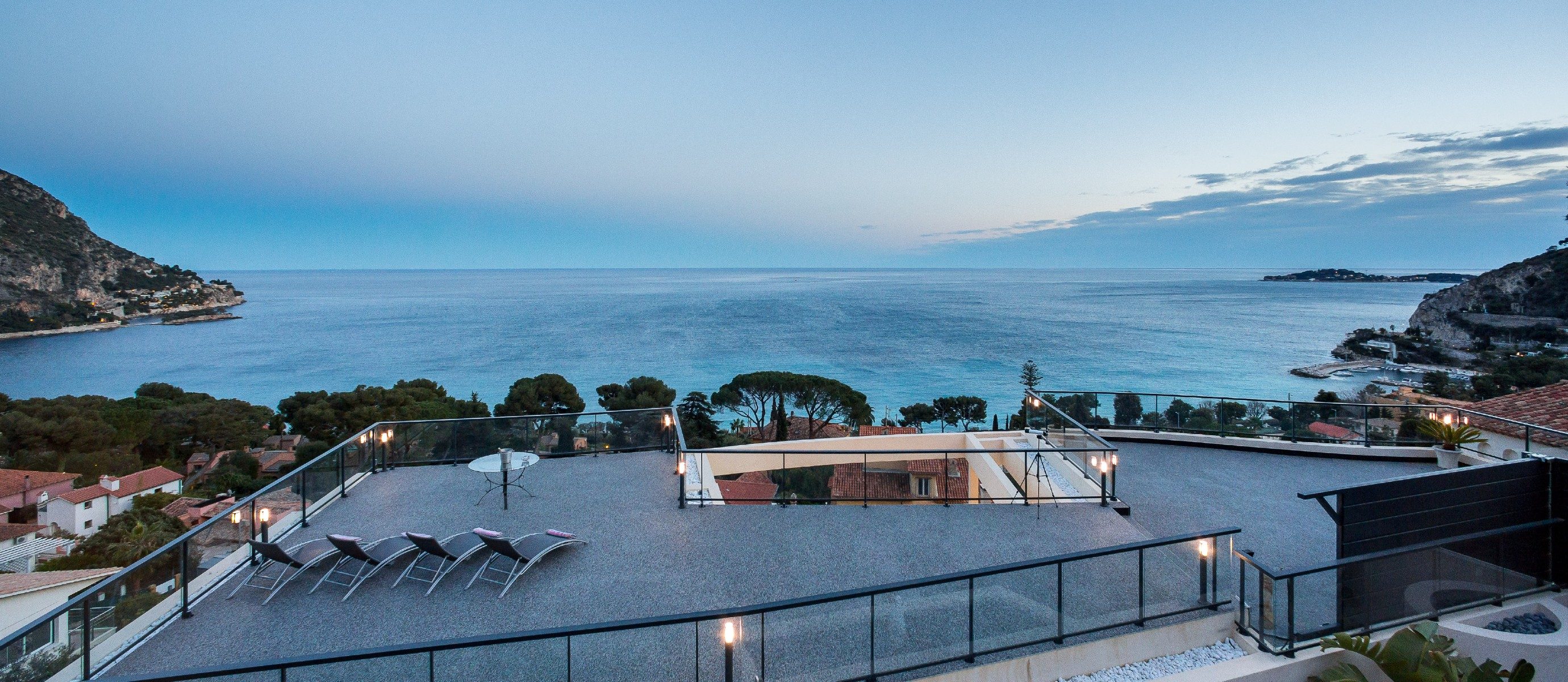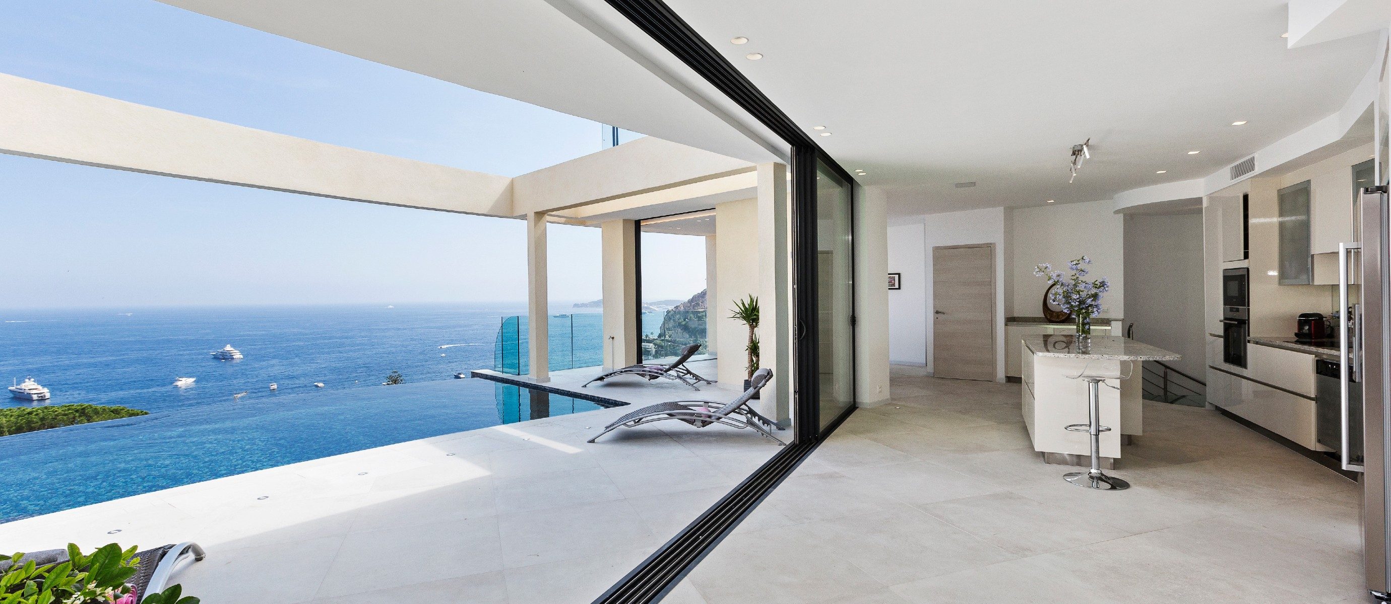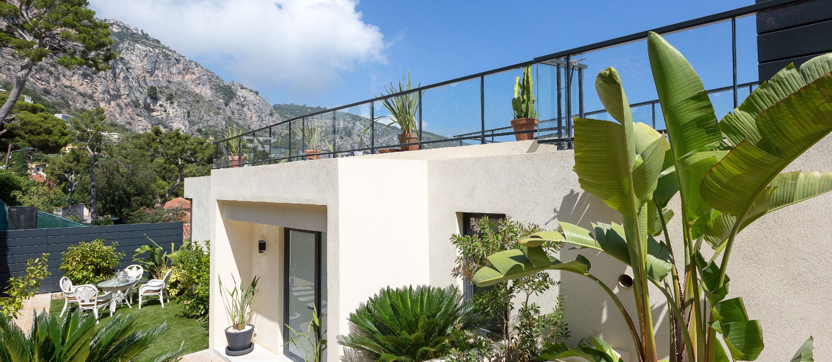 Newly built contemporary villa overlooking the bay of Eze, with unobstructed sea views, a few minutes walk to the beach