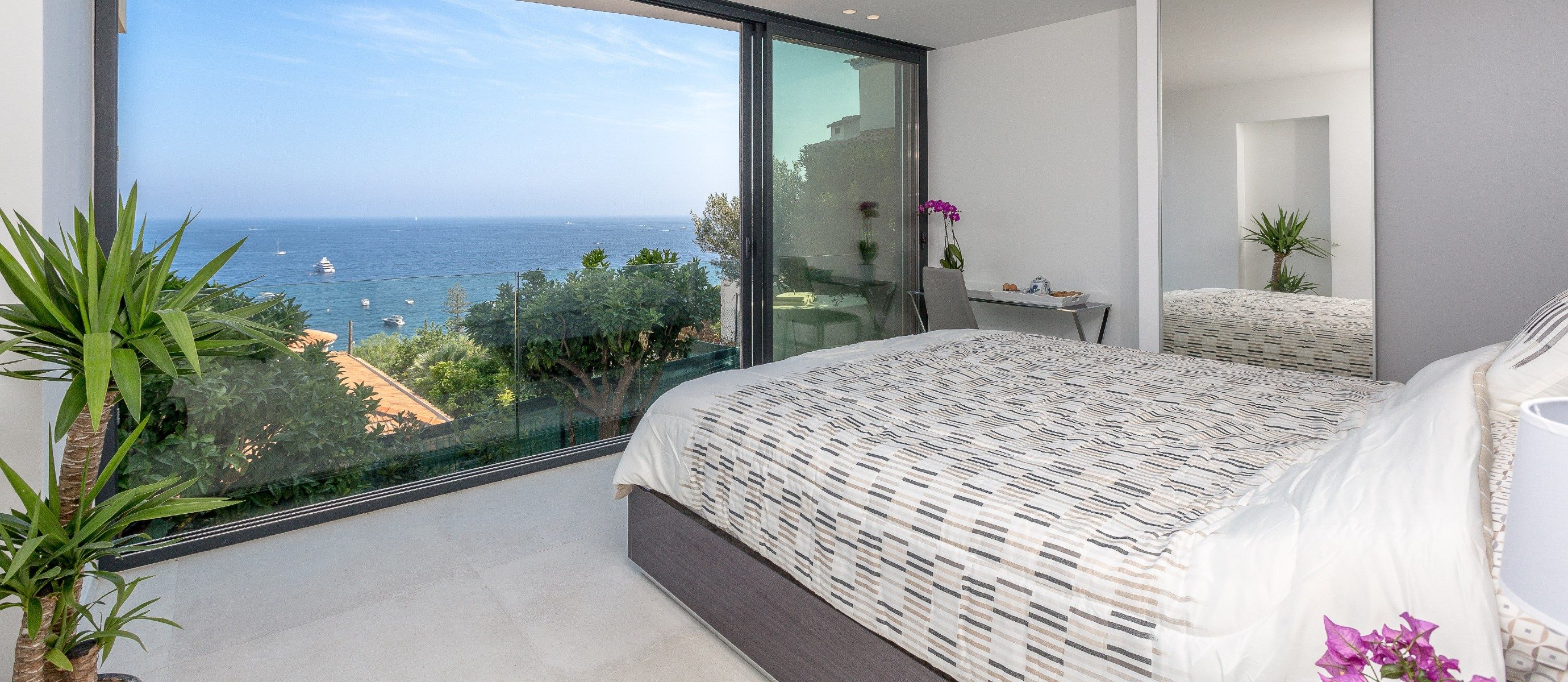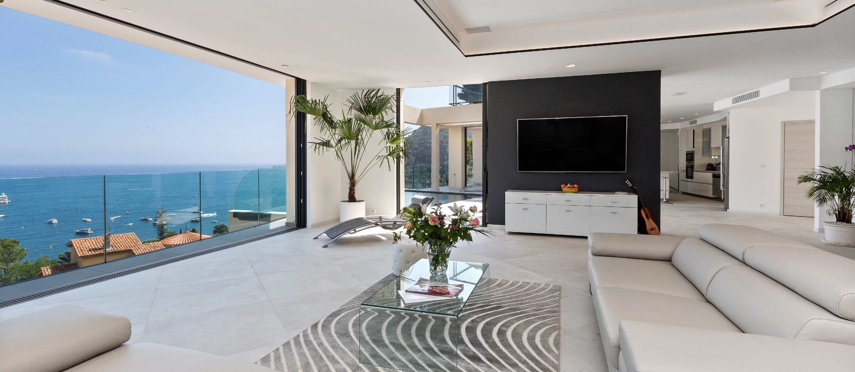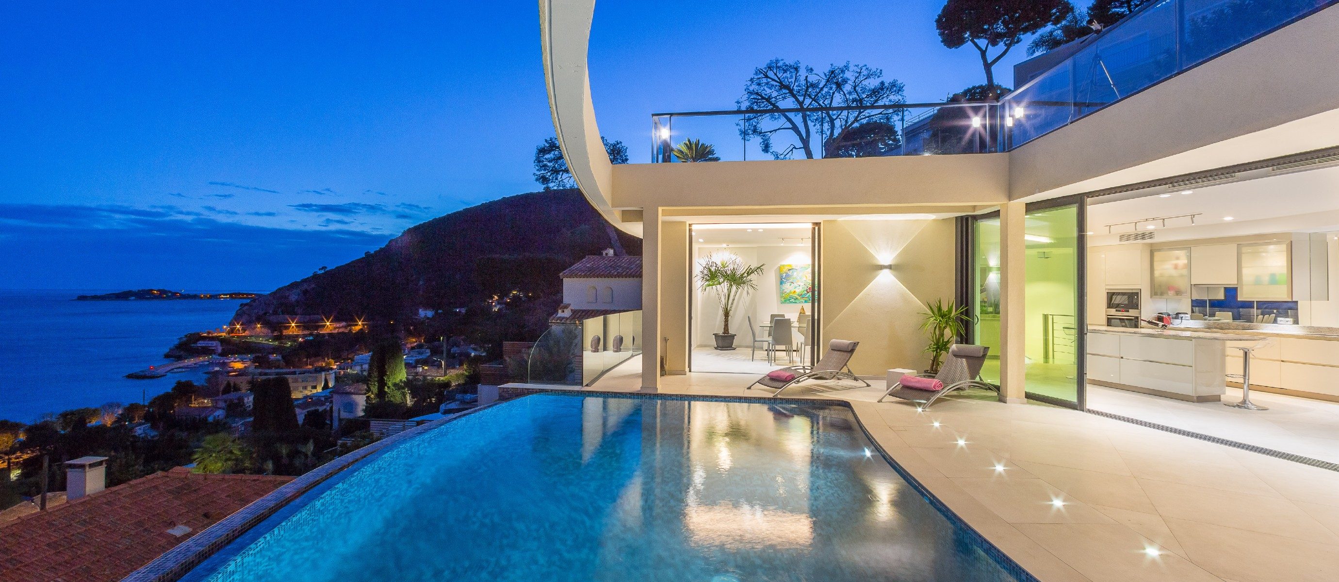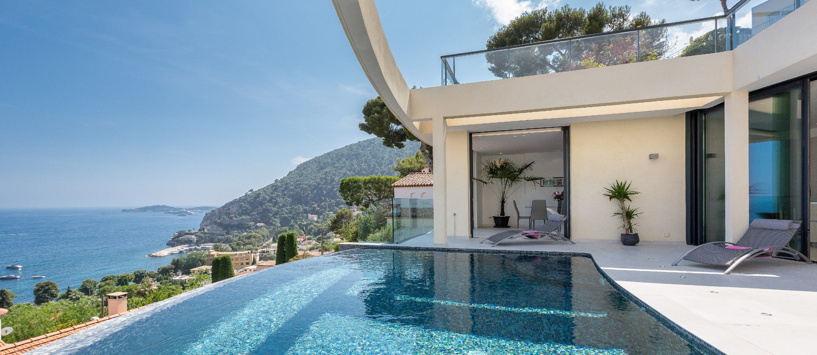 Newly built contemporary villa overlooking the bay of Eze, with unobstructed sea views, a few minutes walk to the beach
