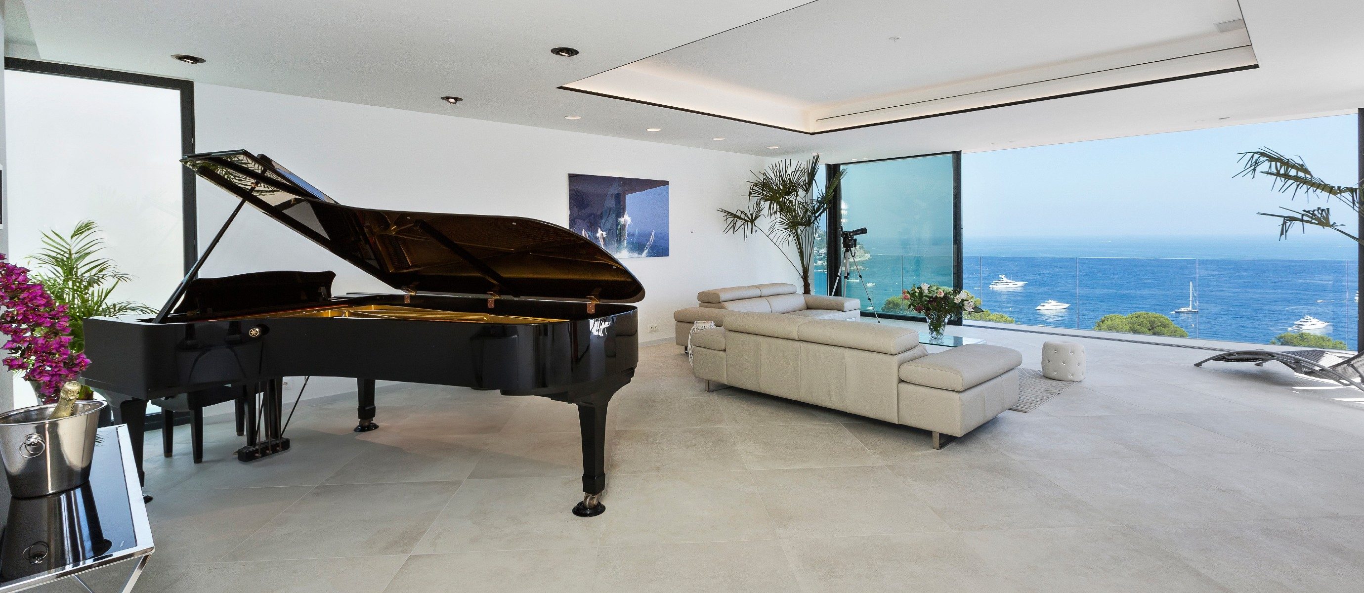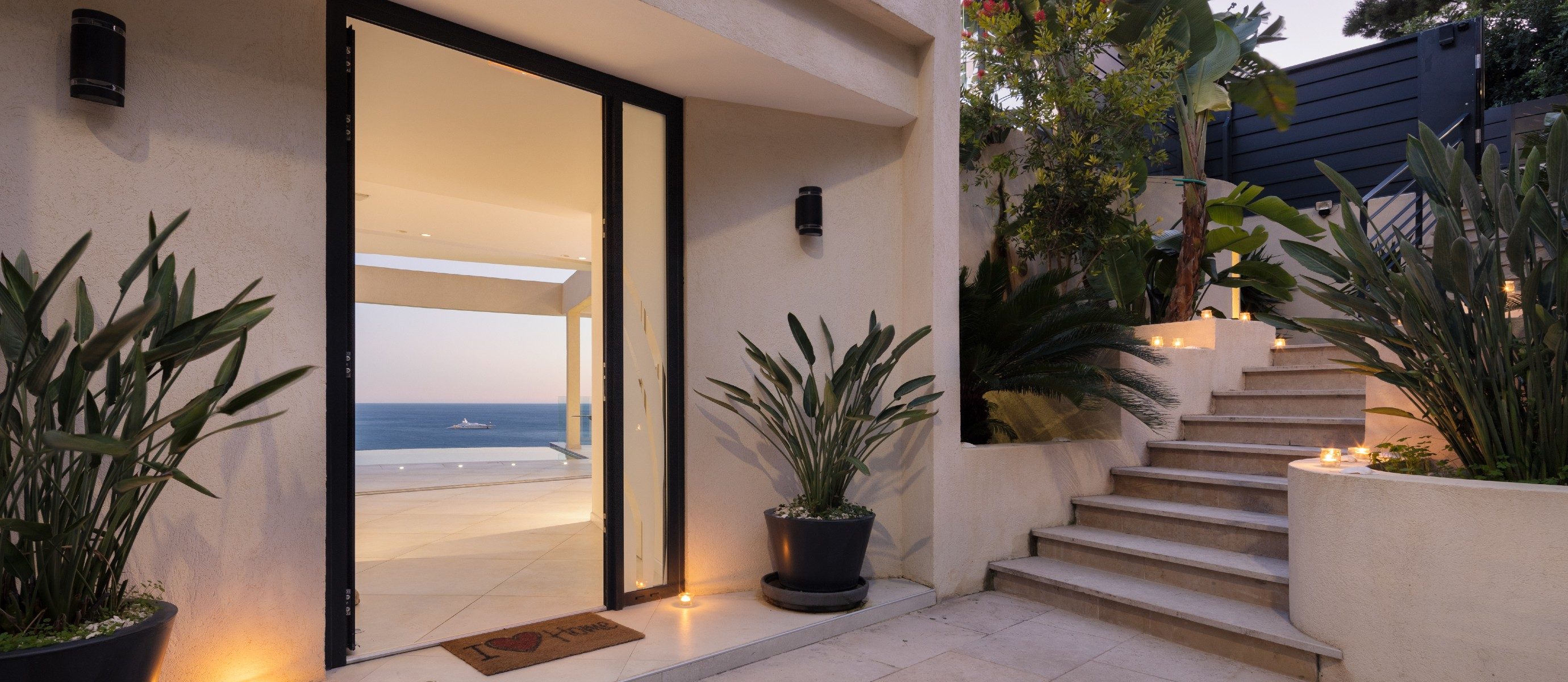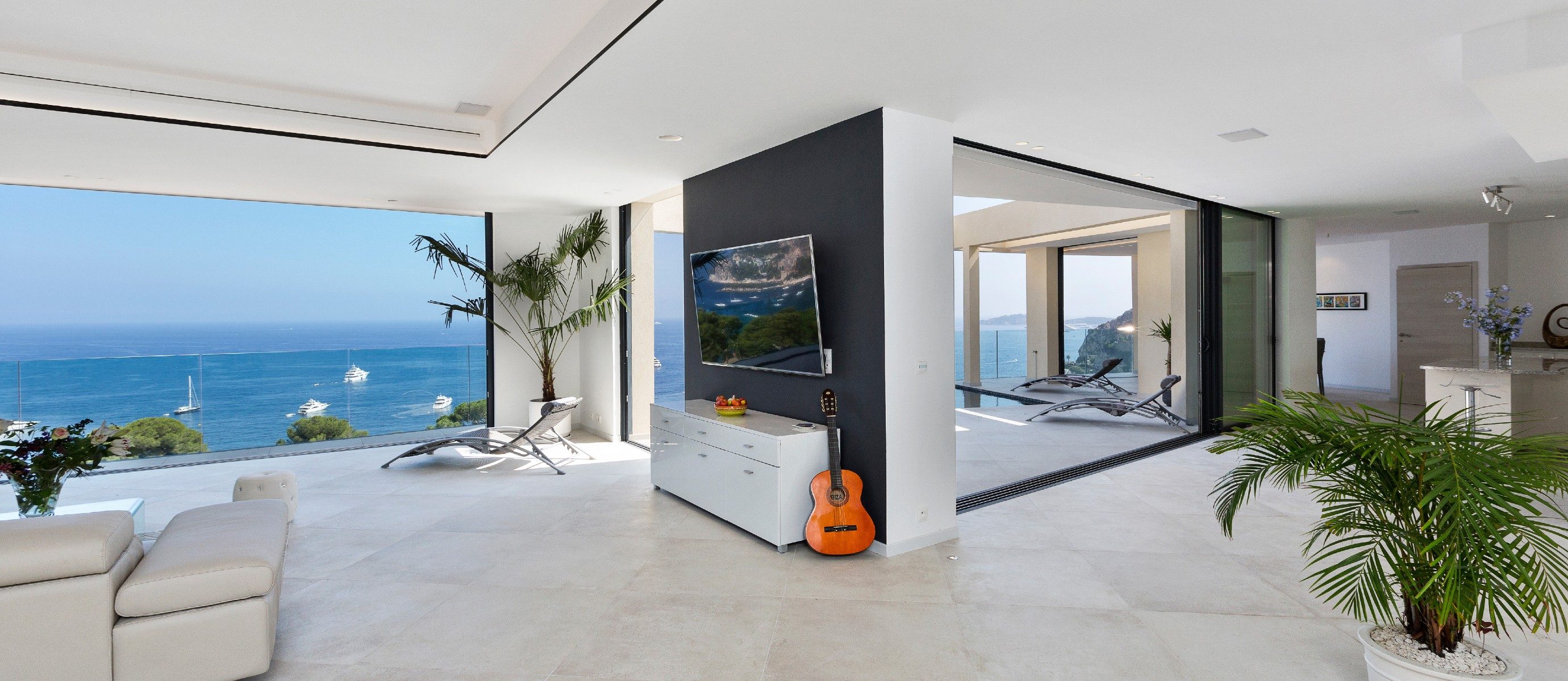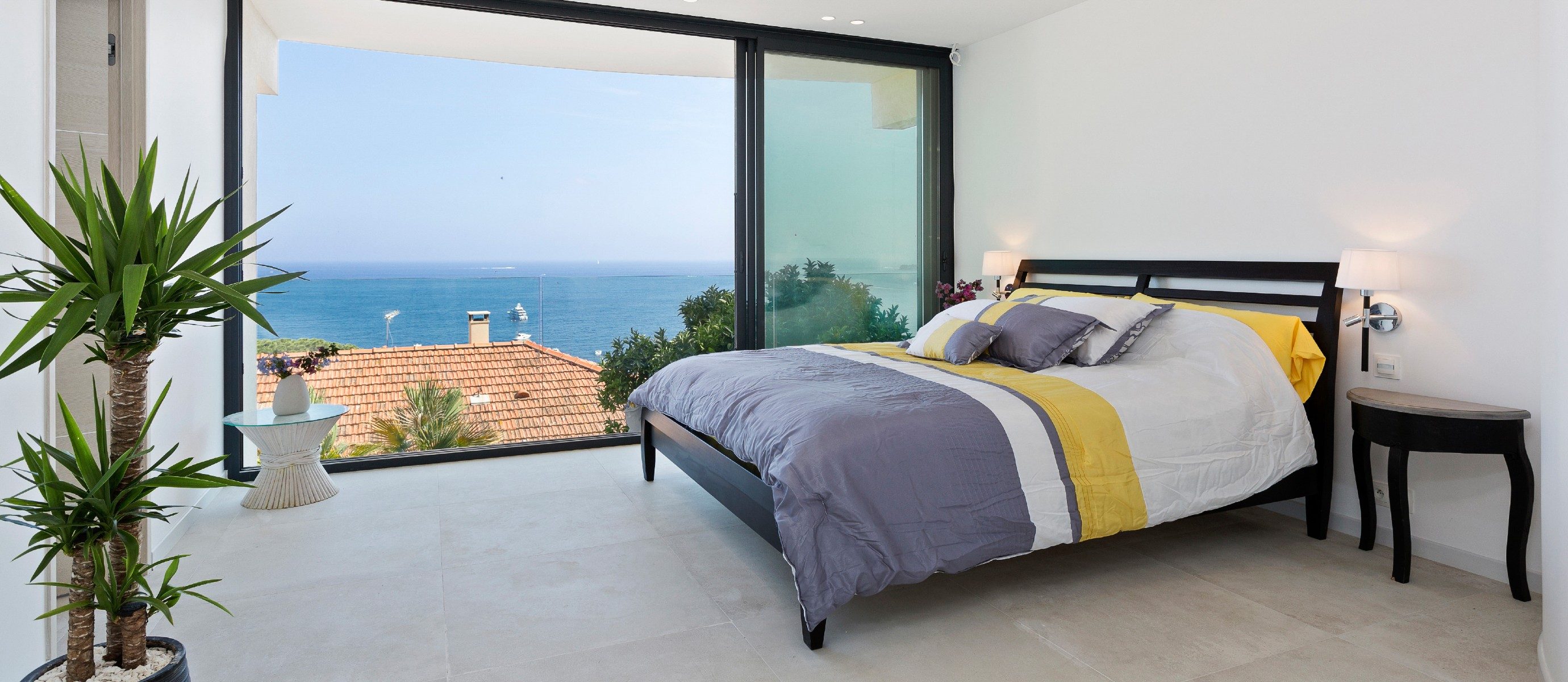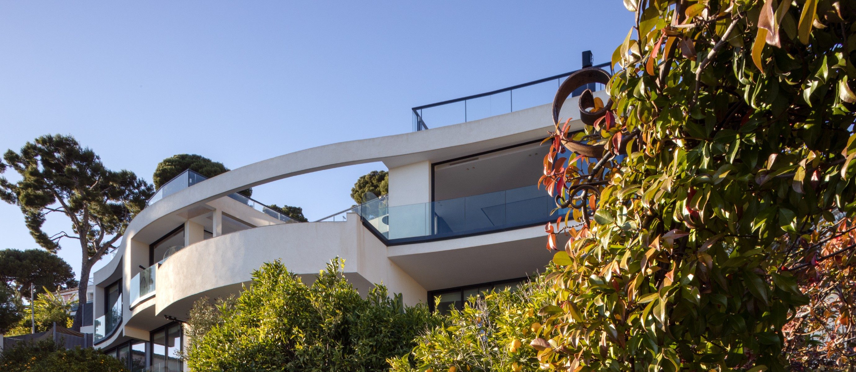 Newly built contemporary villa overlooking the bay of Eze, with unobstructed sea views, a few minutes walk to the beach