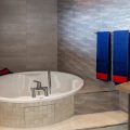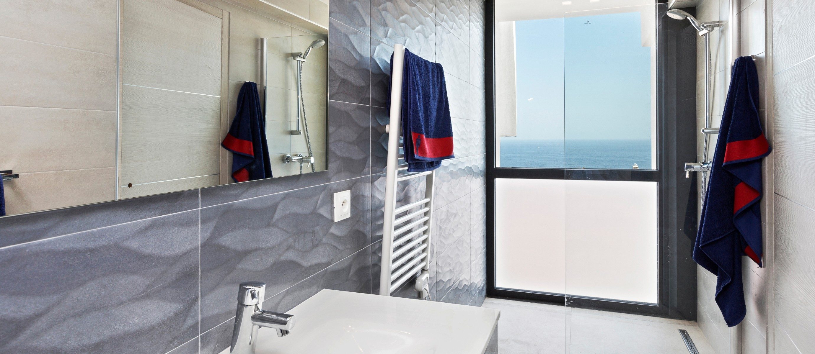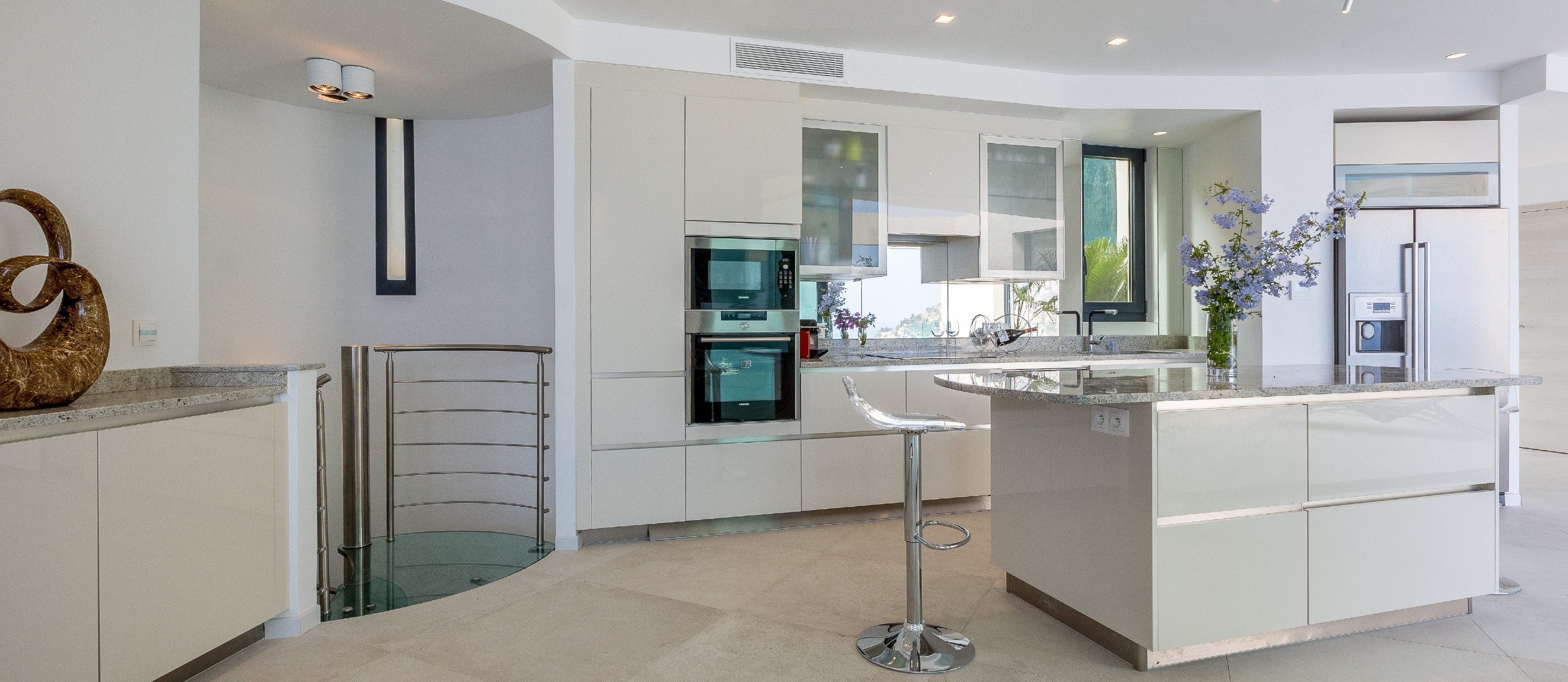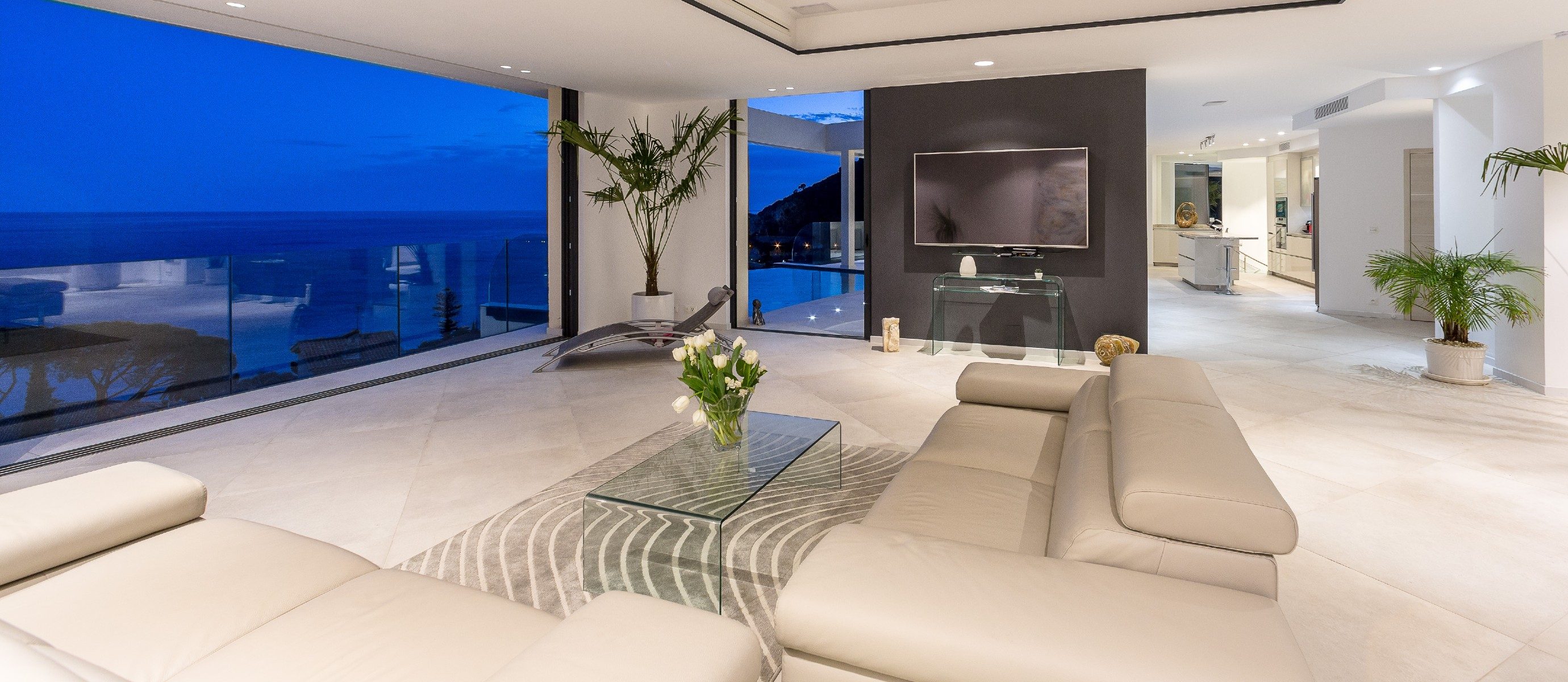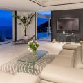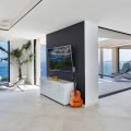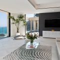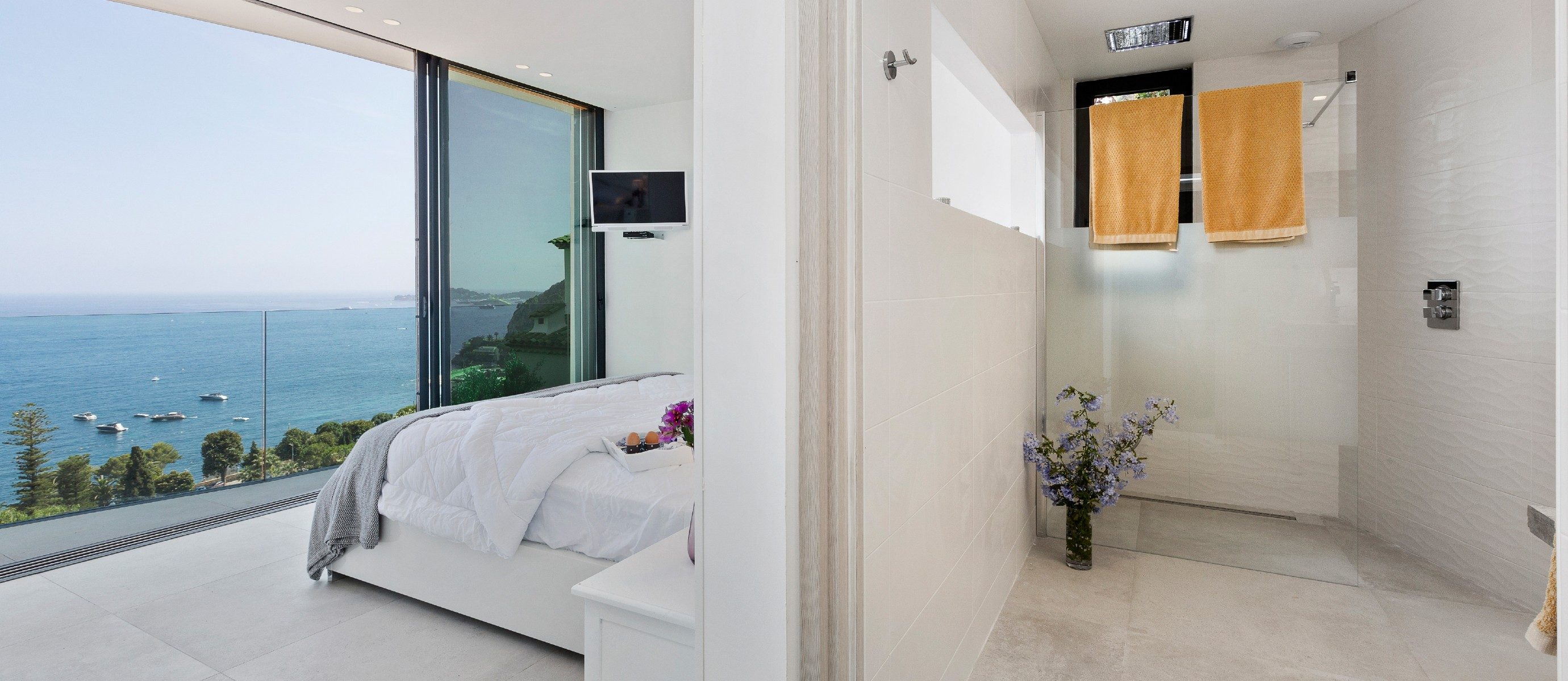 The accommodation is on two levels, and is composed of a large open-plan living area with a fully equipped open concept kitchen spanning to the terrace, and five bedrooms all with en-suite bathrooms and Mediterranean Sea views. Also included is a rooftop terrace featuring panoramic views of the coast: the perfect place for sunset cocktails.