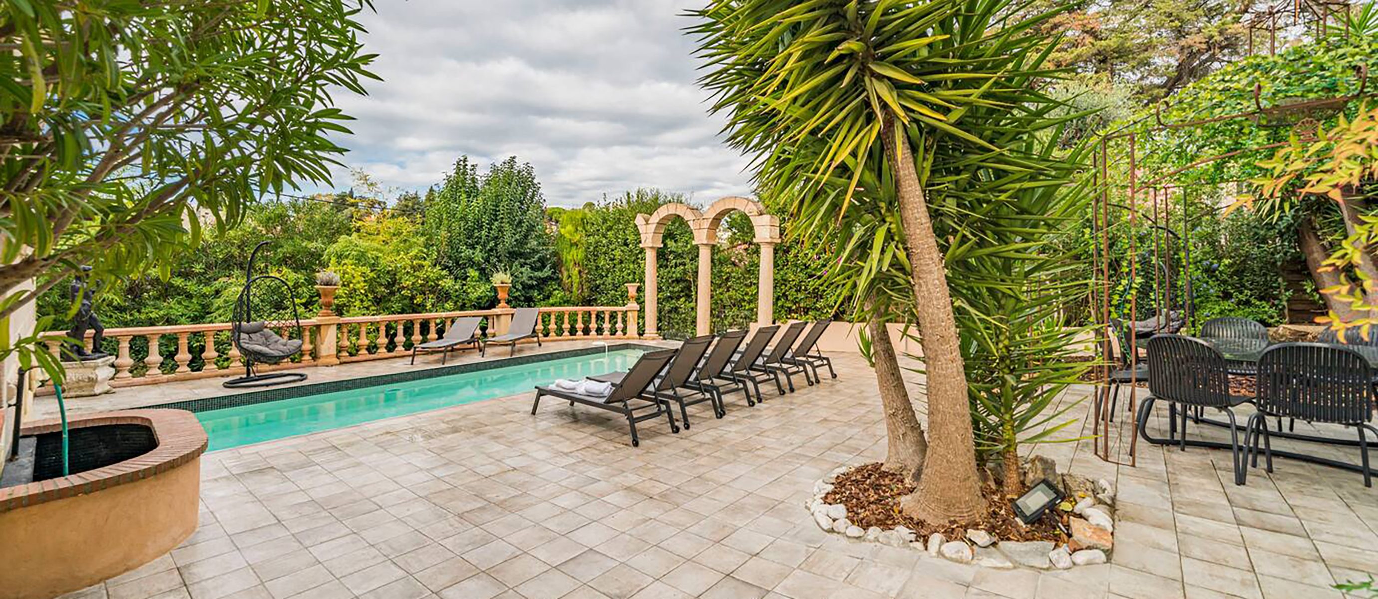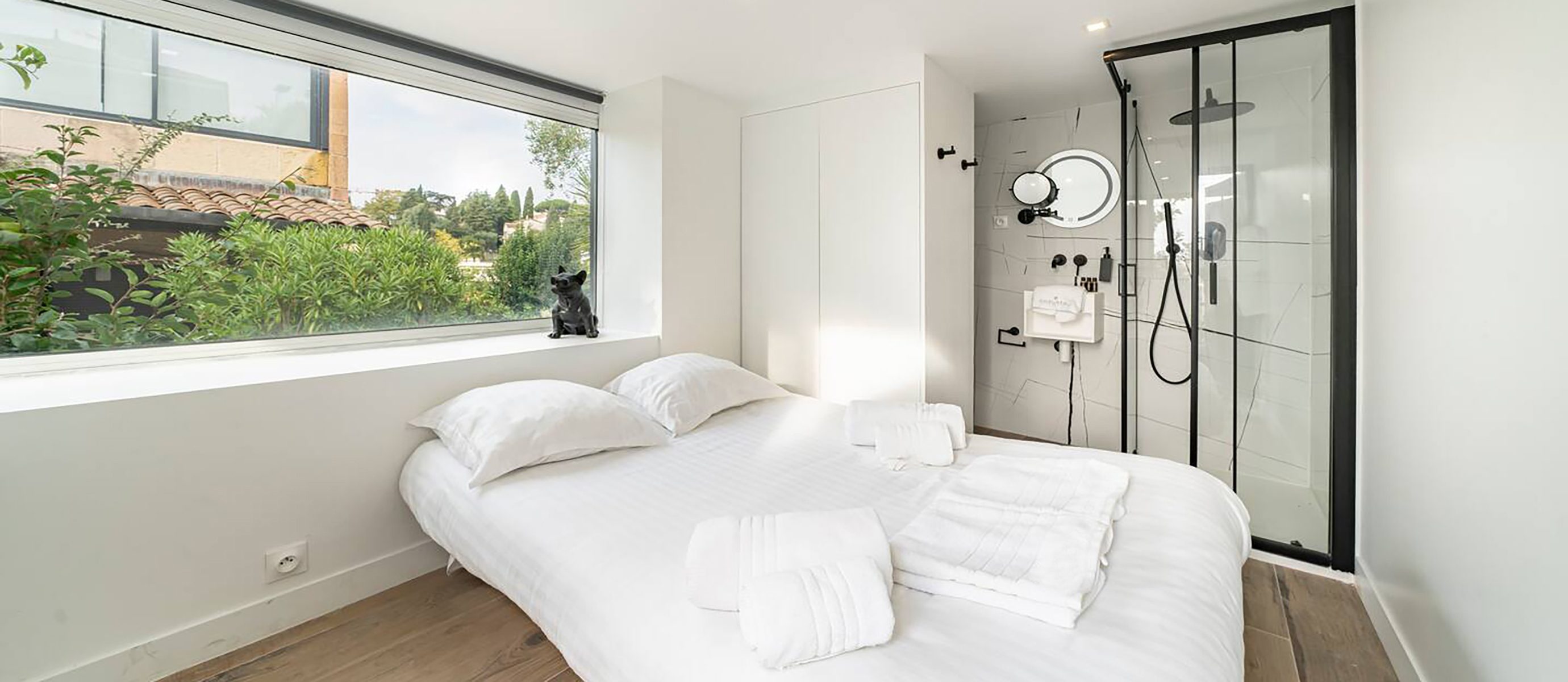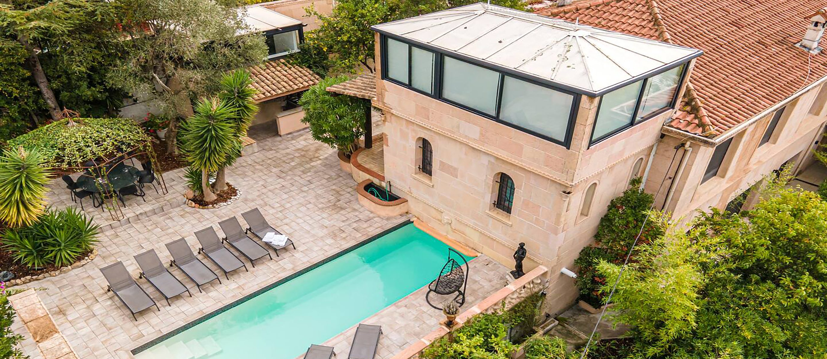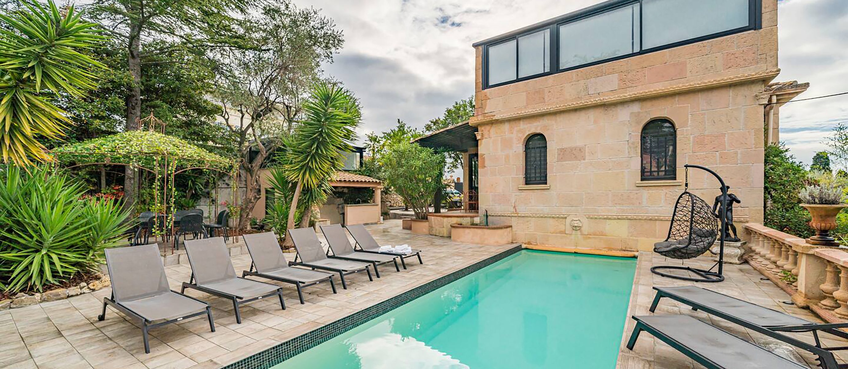 Located in Cannes, 1.5 km from the Palais des Festivals, 1.7 km from the Croisette beach and 29 km away from Nice-Côte d’Azur Airport, the villa is located in the popular residential area of Petit-Juas. Its new owner has completely renovated it and given it back its authentic splendour while bringing in 21st-century technology. The villa is now a fabulous living space where the words “comfort”, “luxury” and “art of living” take on their full meaning. It is set on a 600 m² plot of land and can accommodate up to 12 people on two floors.