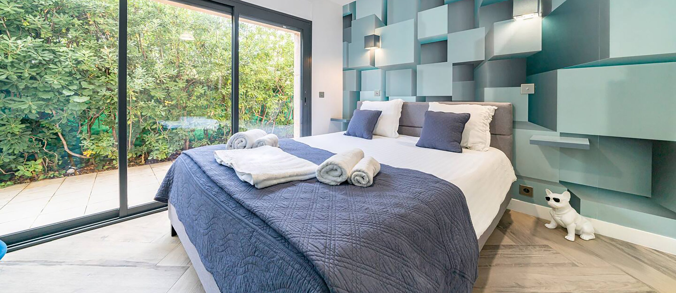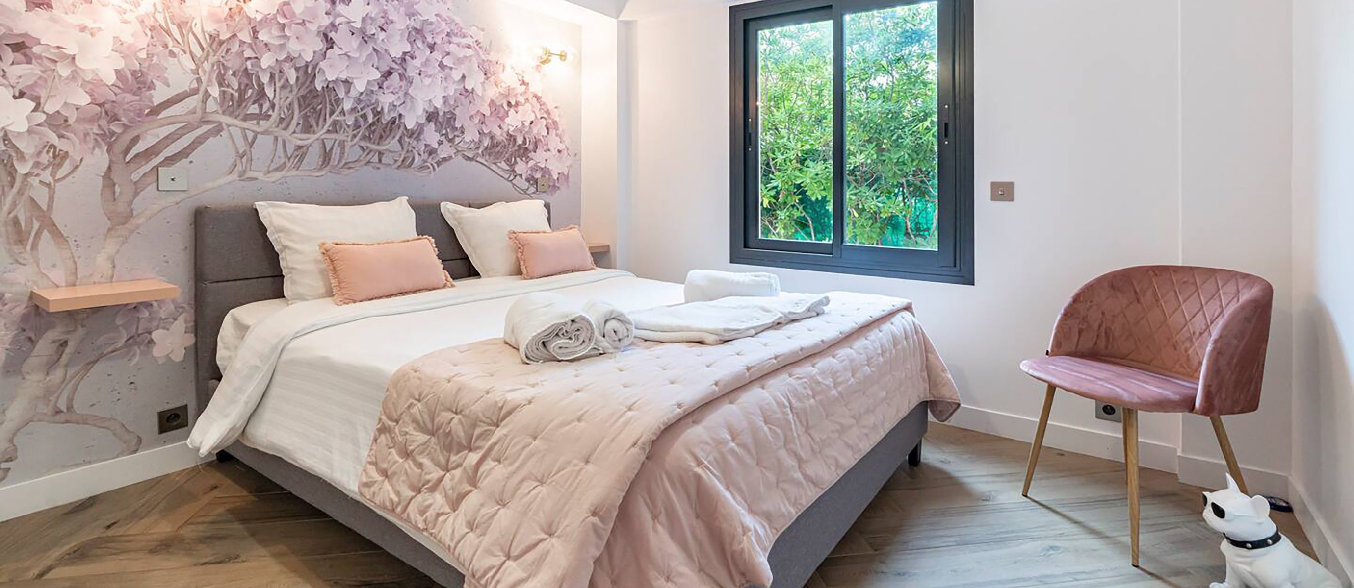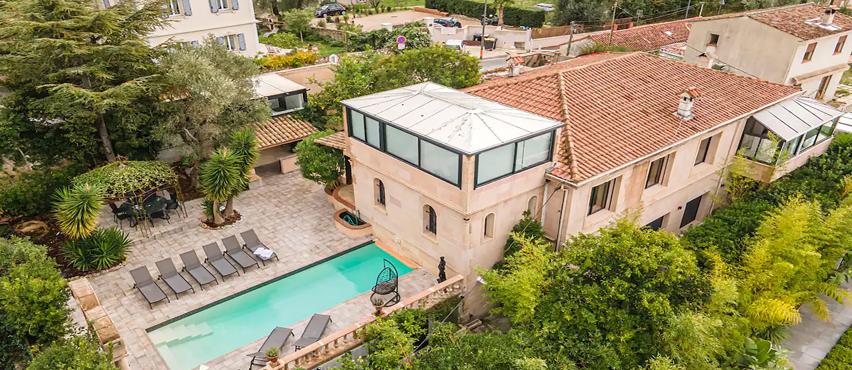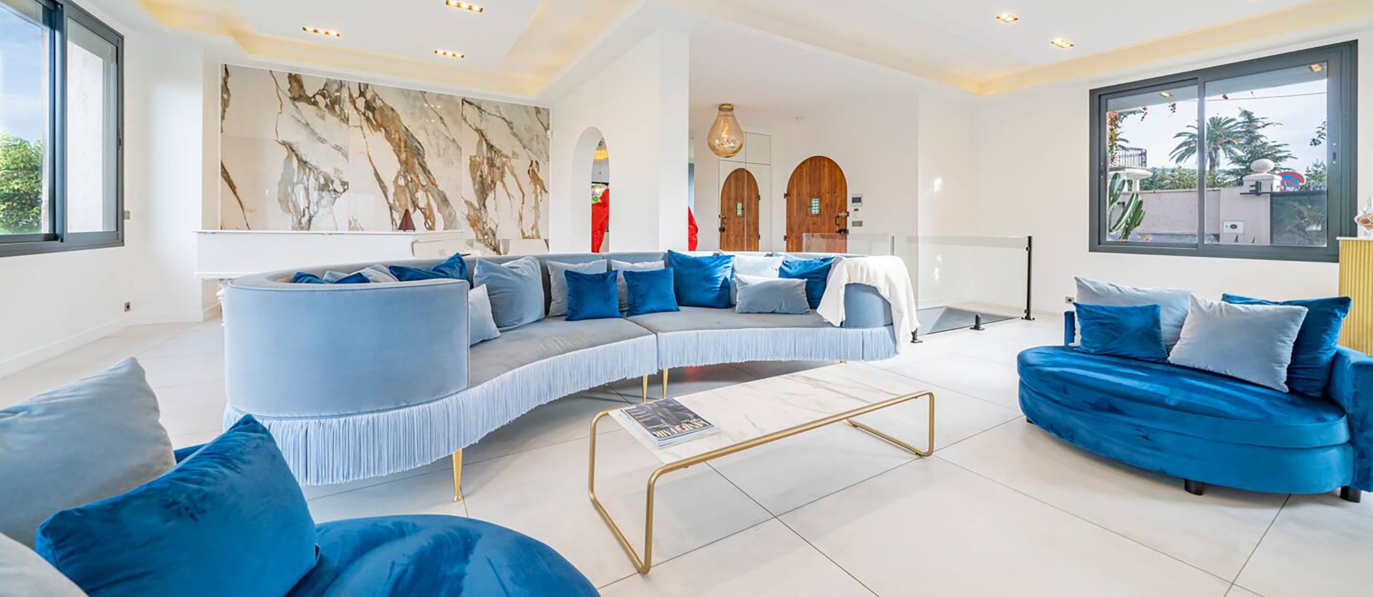 Located in Cannes, 1.5 km from the Palais des Festivals, 1.7 km from the Croisette beach and 29 km away from Nice-Côte d’Azur Airport, the villa is located in the popular residential area of Petit-Juas. Its new owner has completely renovated it and given it back its authentic splendour while bringing in 21st-century technology. The villa is now a fabulous living space where the words “comfort”, “luxury” and “art of living” take on their full meaning. It is set on a 600 m² plot of land and can accommodate up to 12 people on two floors.