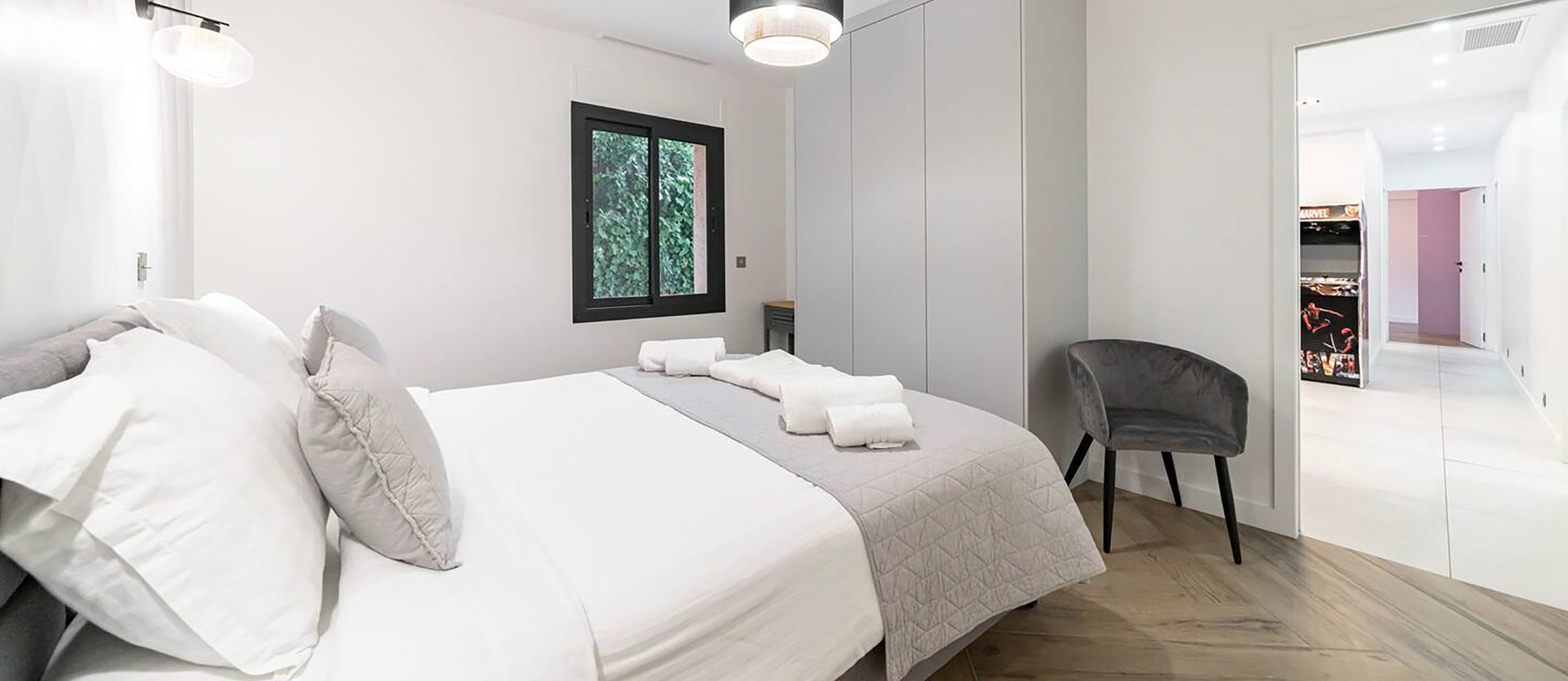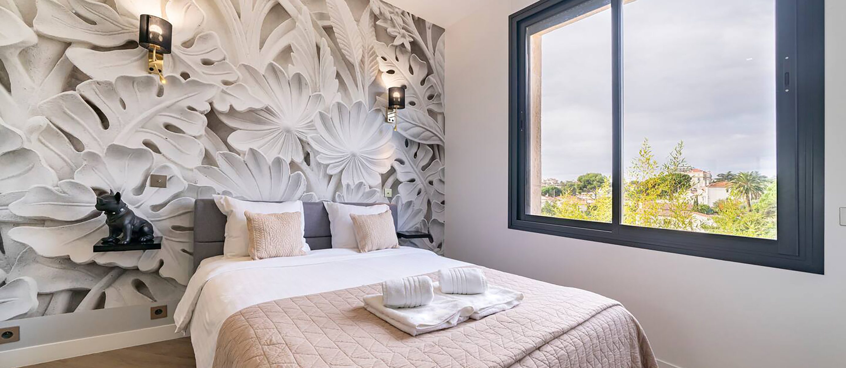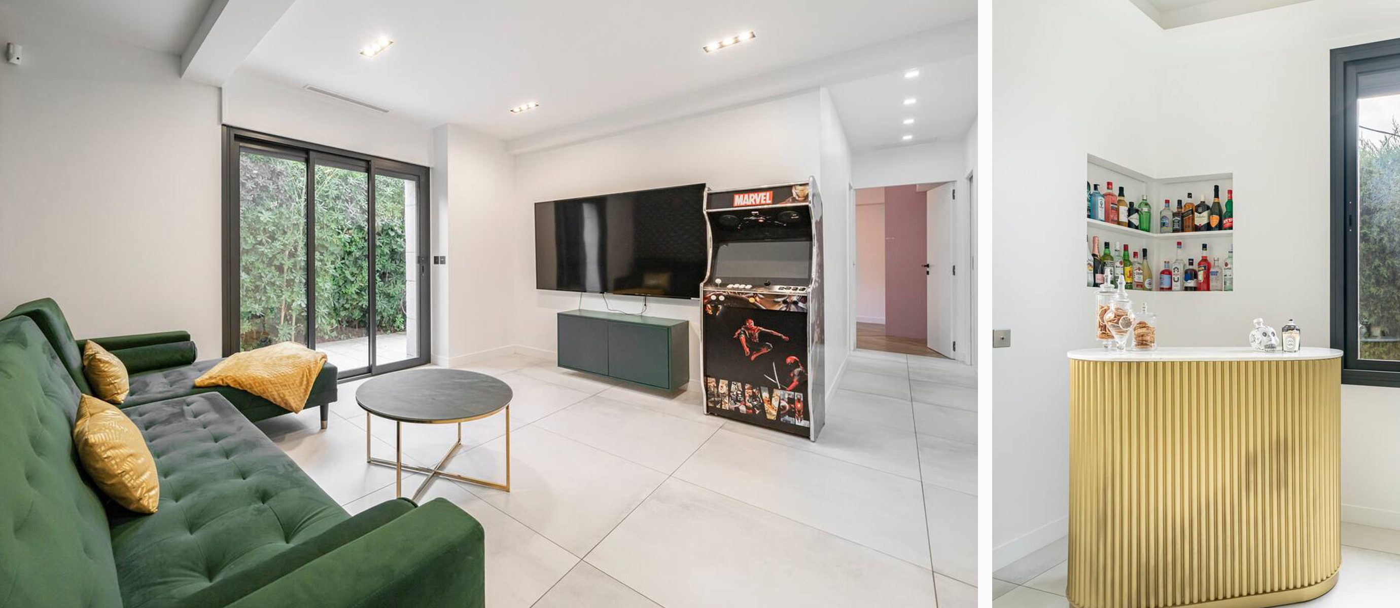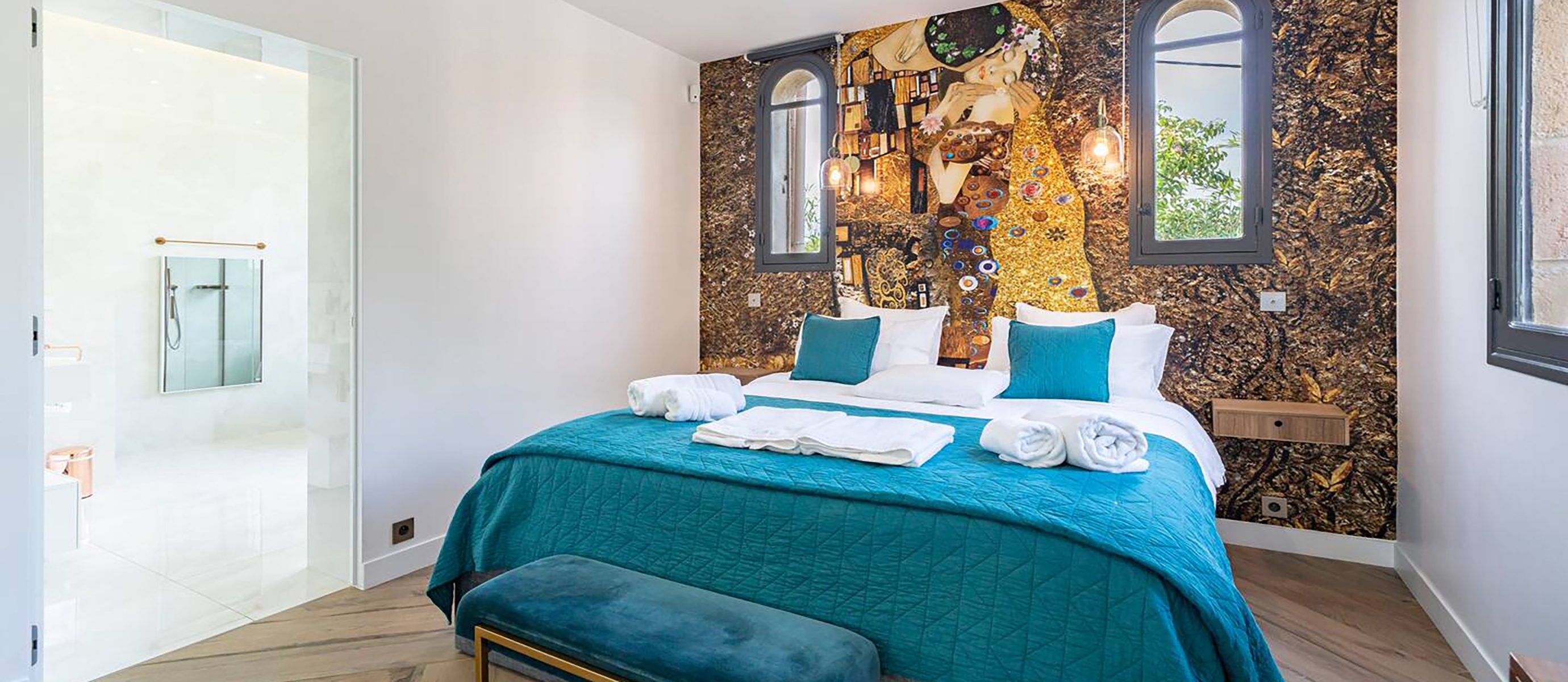 Located in Cannes, 1.5 km from the Palais des Festivals, 1.7 km from the Croisette beach and 29 km away from Nice-Côte d’Azur Airport, the villa is located in the popular residential area of Petit-Juas. Its new owner has completely renovated it and given it back its authentic splendour while bringing in 21st-century technology. The villa is now a fabulous living space where the words “comfort”, “luxury” and “art of living” take on their full meaning. It is set on a 600 m² plot of land and can accommodate up to 12 people on two floors.