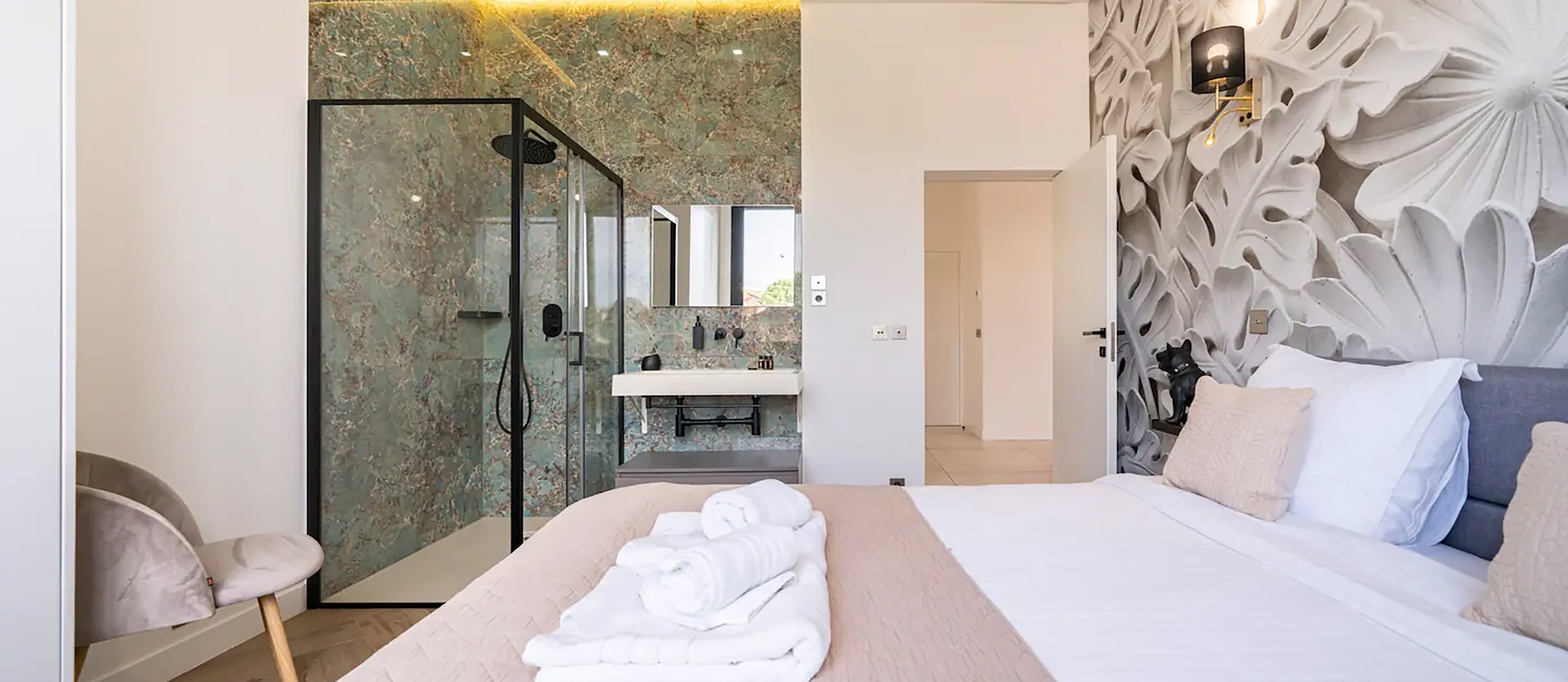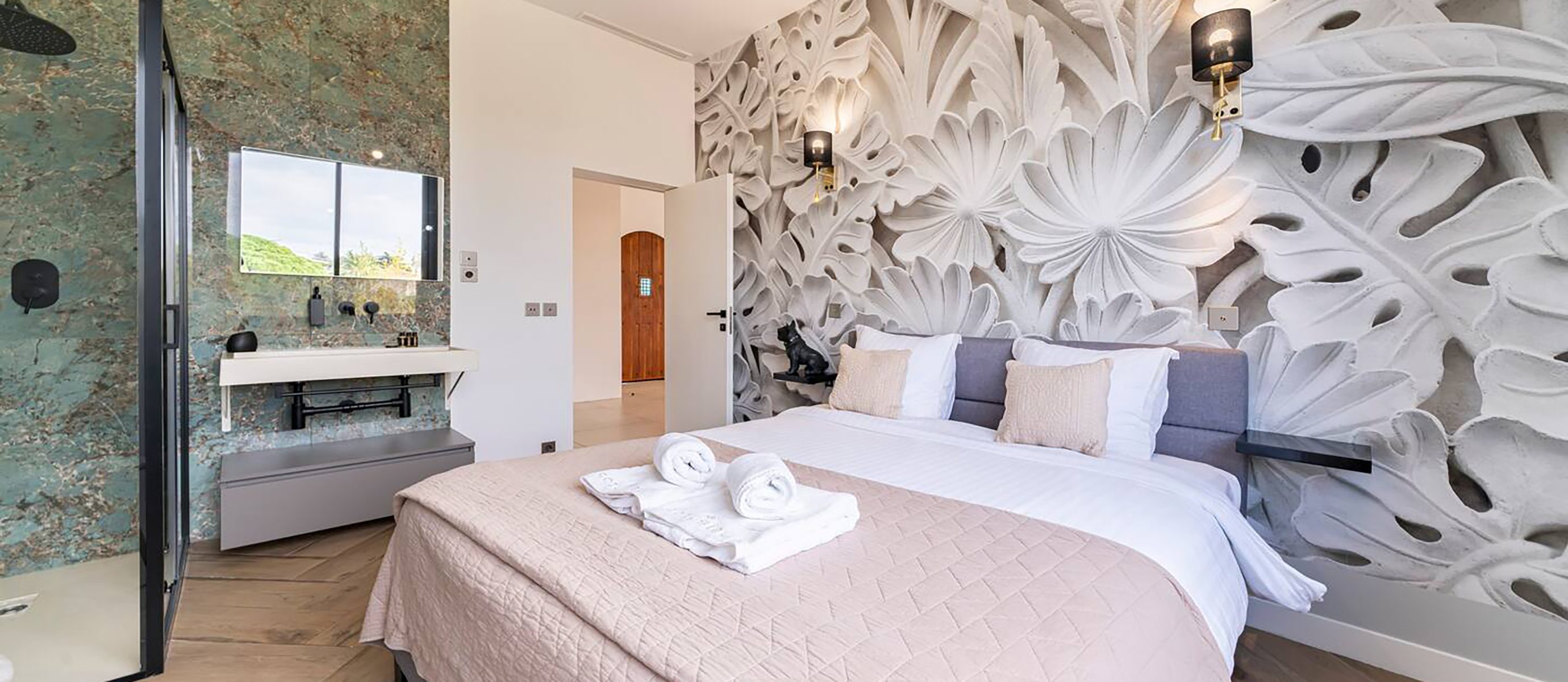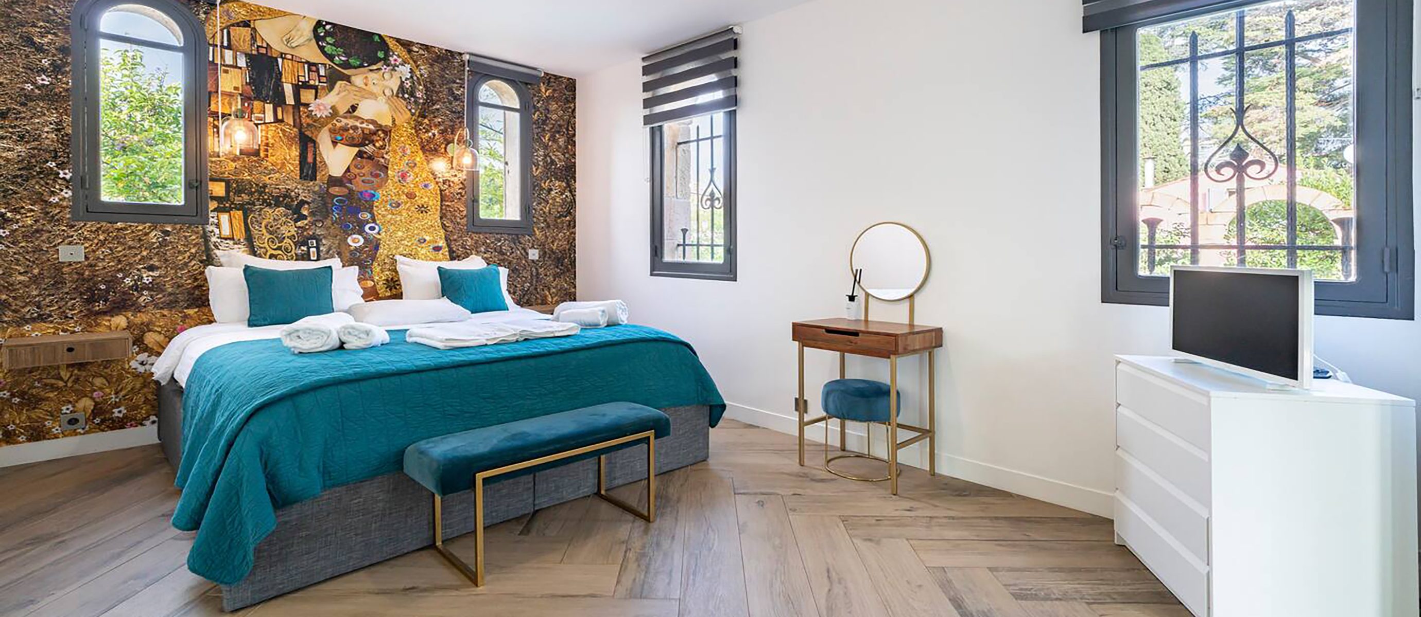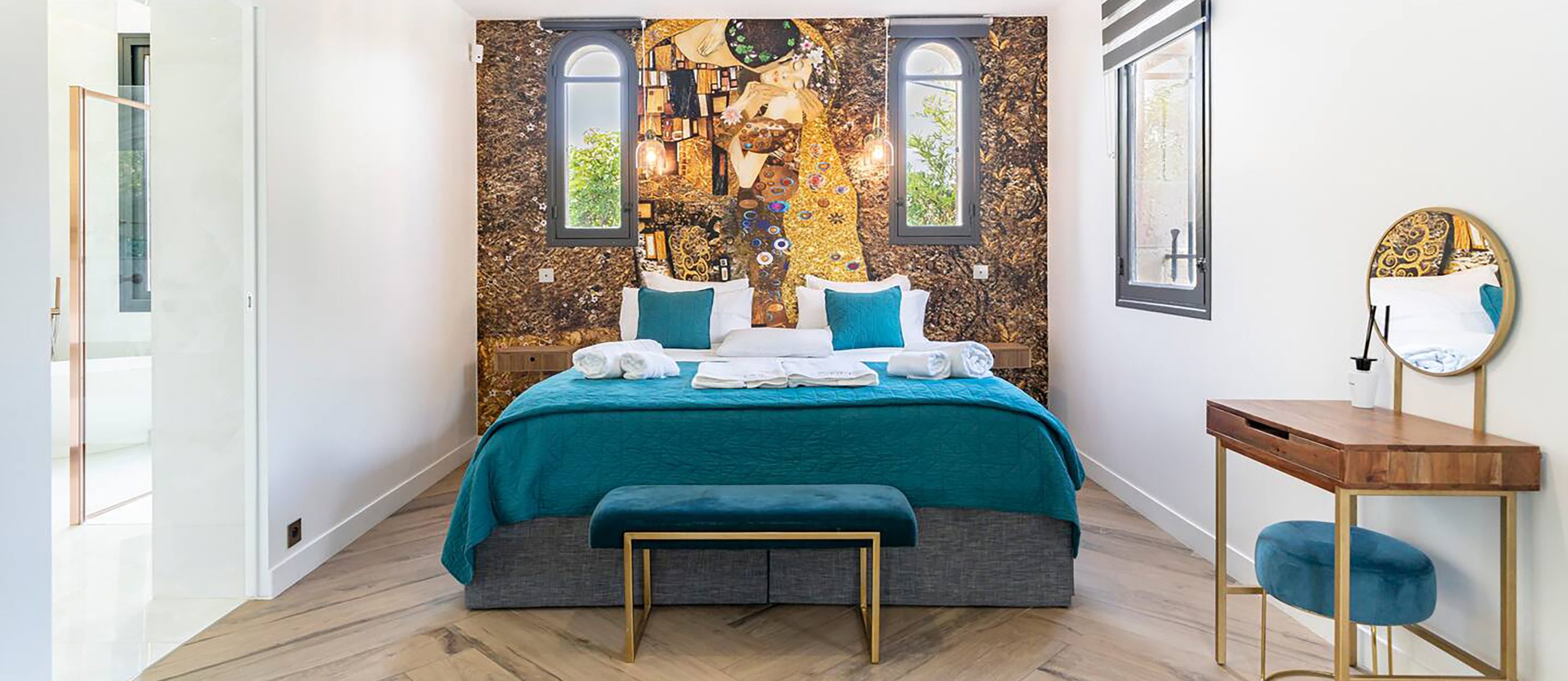 Located in Cannes, 1.5 km from the Palais des Festivals, 1.7 km from the Croisette beach and 29 km away from Nice-Côte d’Azur Airport, the villa is located in the popular residential area of Petit-Juas. Its new owner has completely renovated it and given it back its authentic splendour while bringing in 21st-century technology. The villa is now a fabulous living space where the words “comfort”, “luxury” and “art of living” take on their full meaning. It is set on a 600 m² plot of land and can accommodate up to 12 people on two floors.