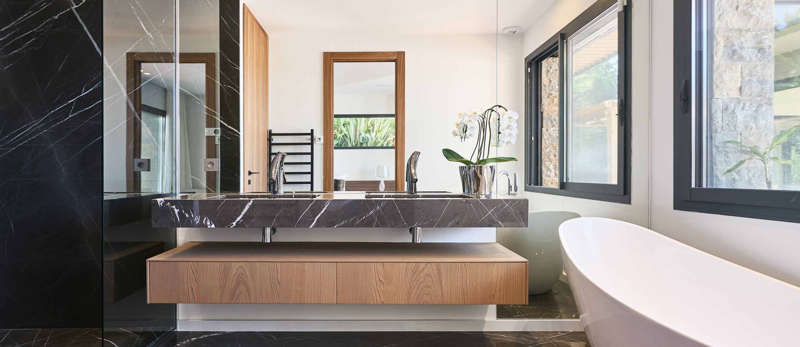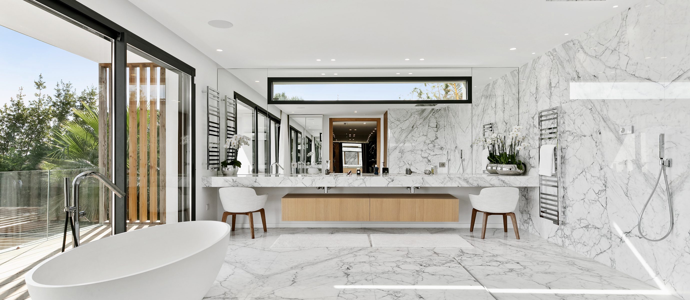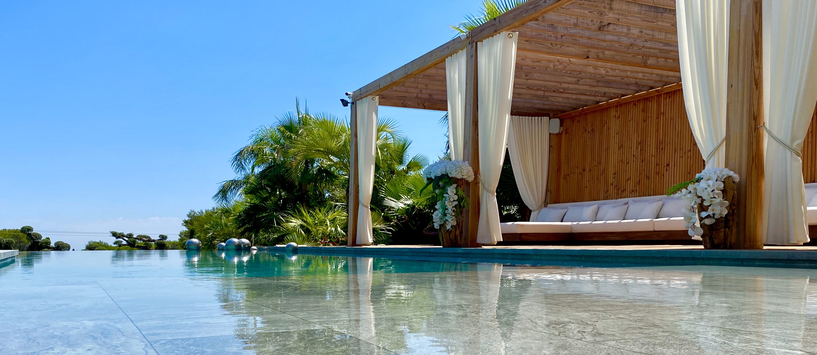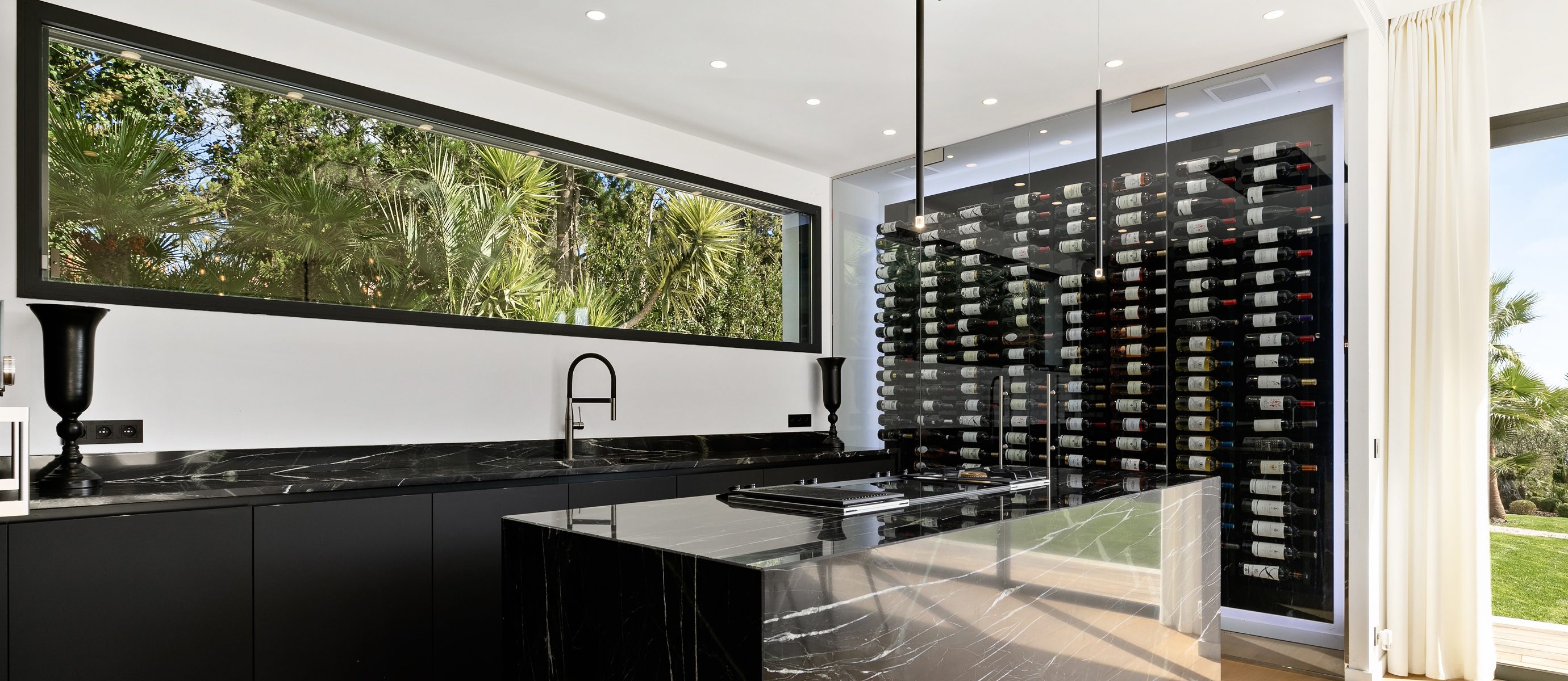 A modern sophisticated villa in one of the most sought-after areas of Mougins, with views to the sea. The floor-to-ceiling windows create a continuous indoor-outdoor flow for entertaining entertainmenting, lounges and a pool house with its heated infinity pool.