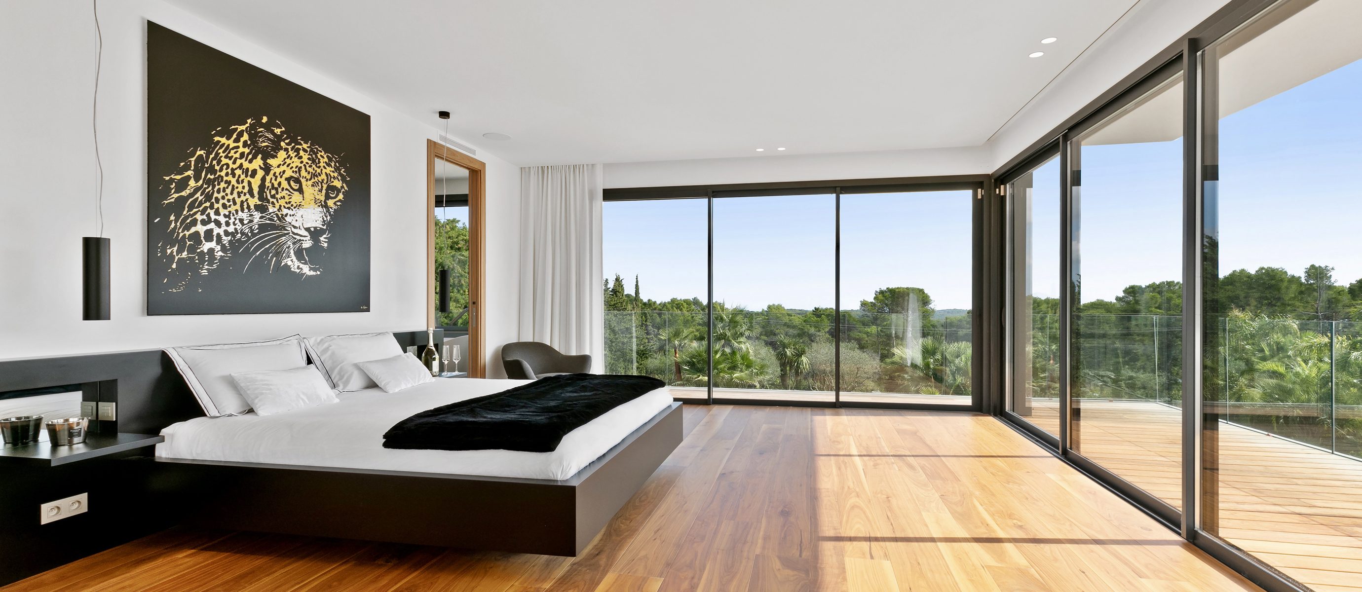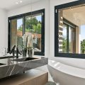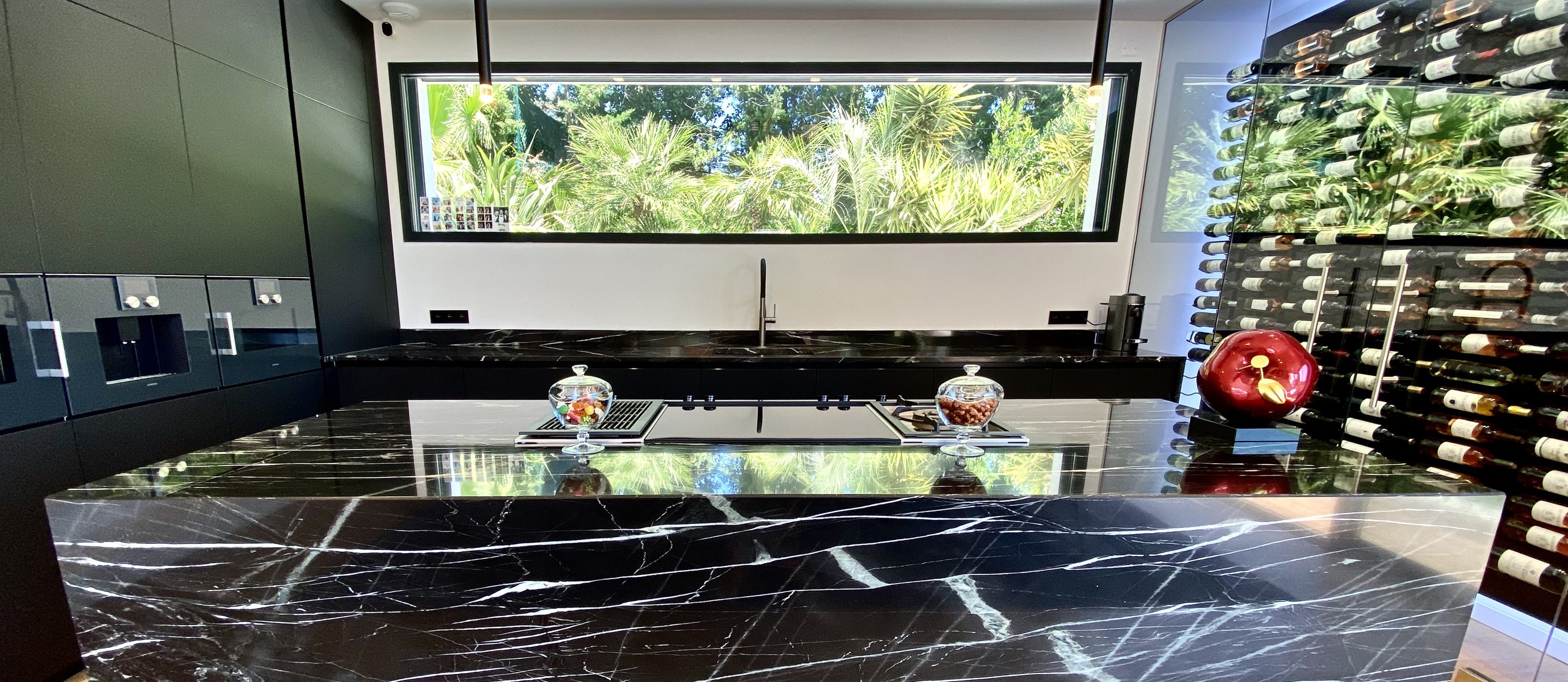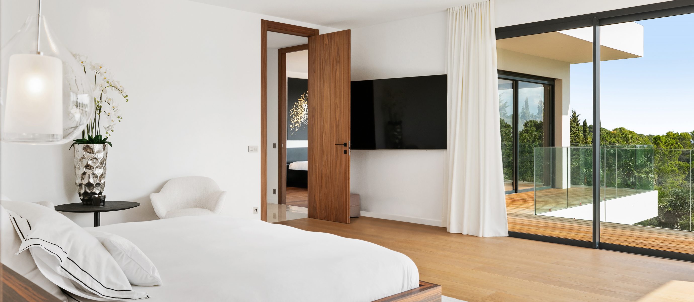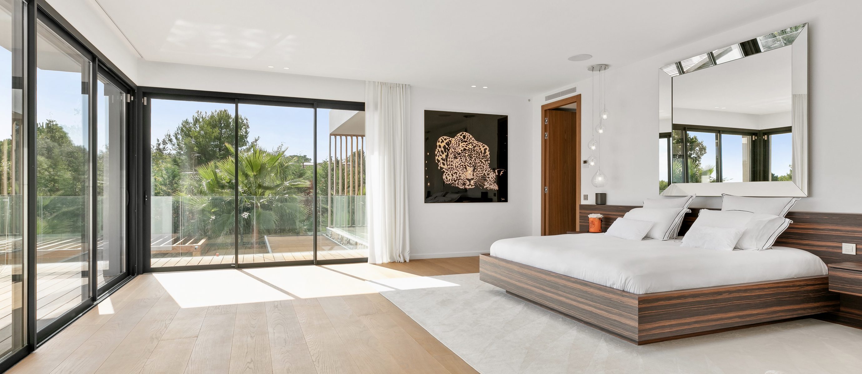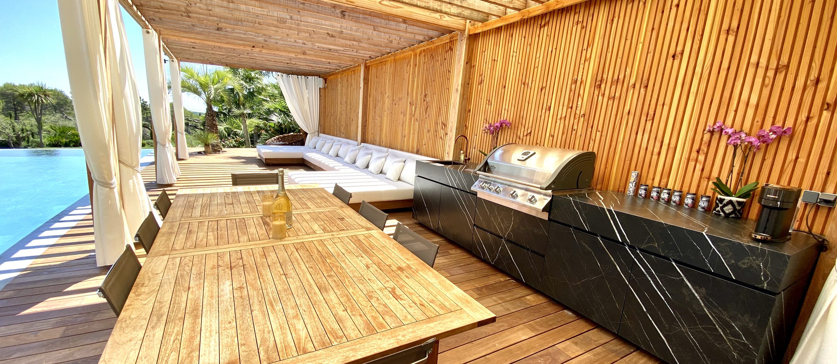 A modern sophisticated villa in one of the most sought-after areas of Mougins, with views to the sea. The floor-to-ceiling windows create a continuous indoor-outdoor flow for entertaining entertainmenting, lounges and a pool house with its heated infinity pool.