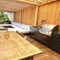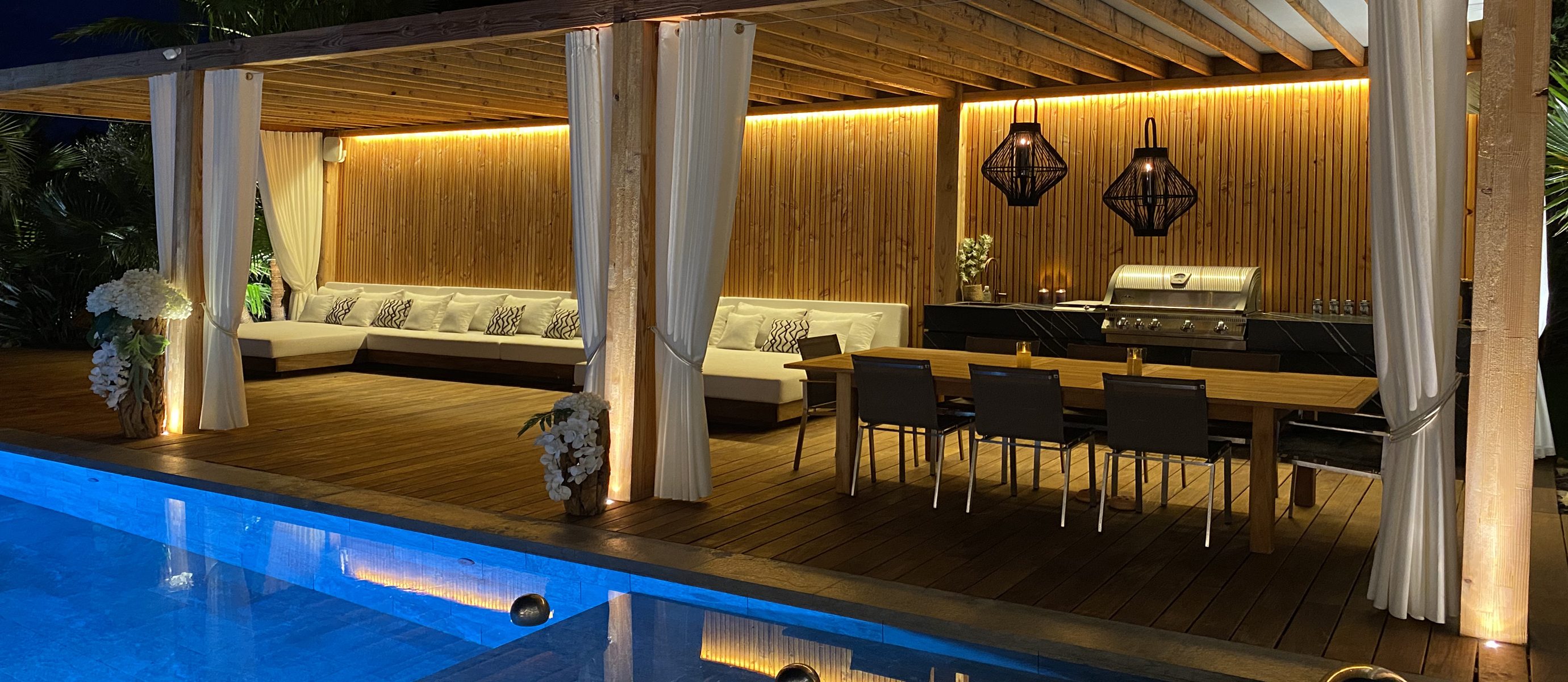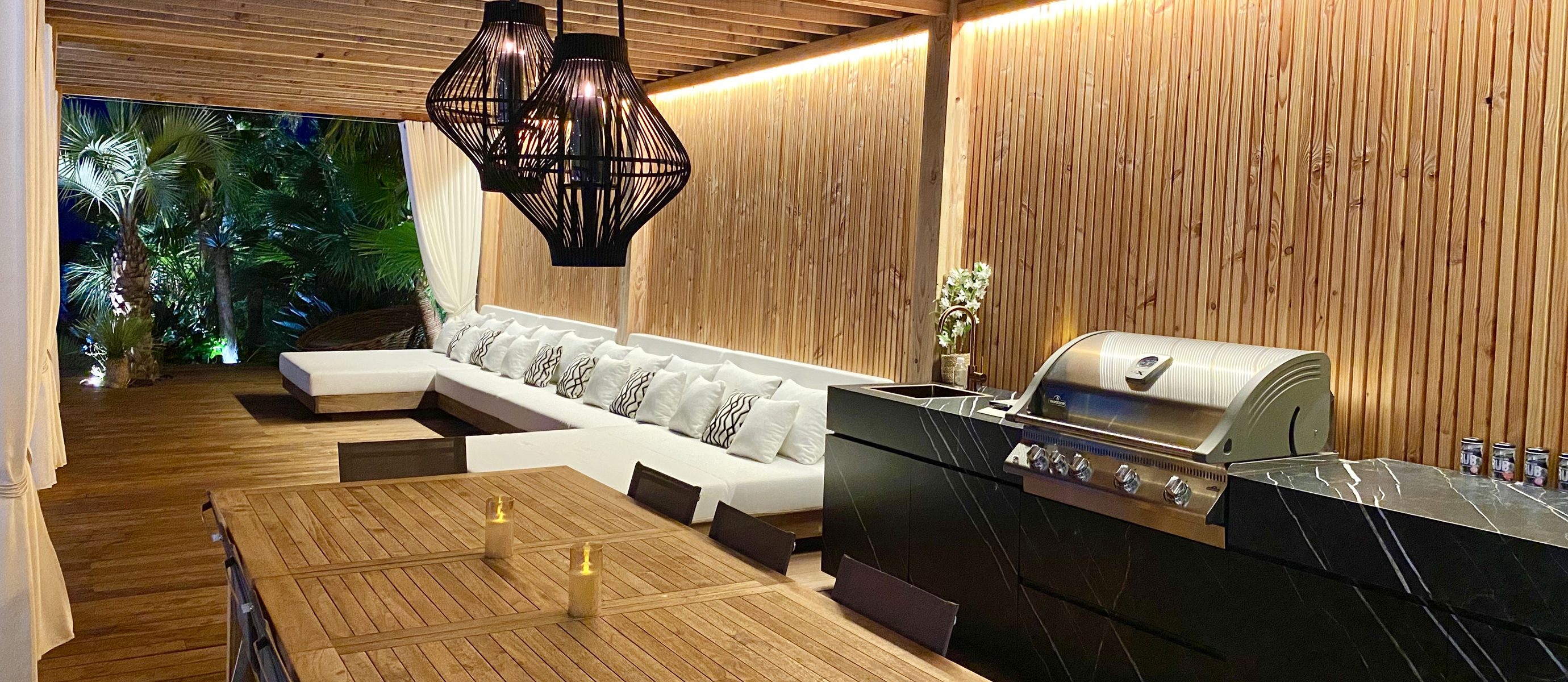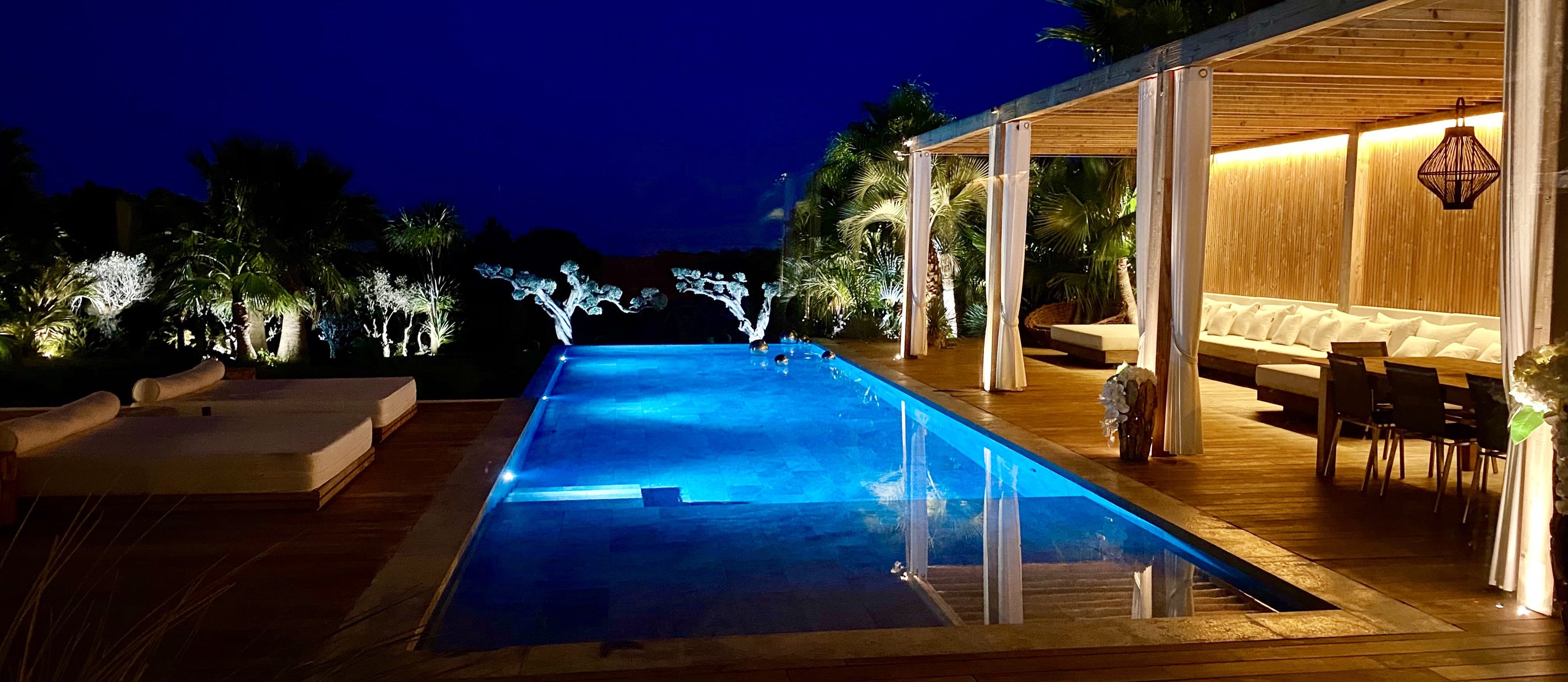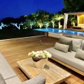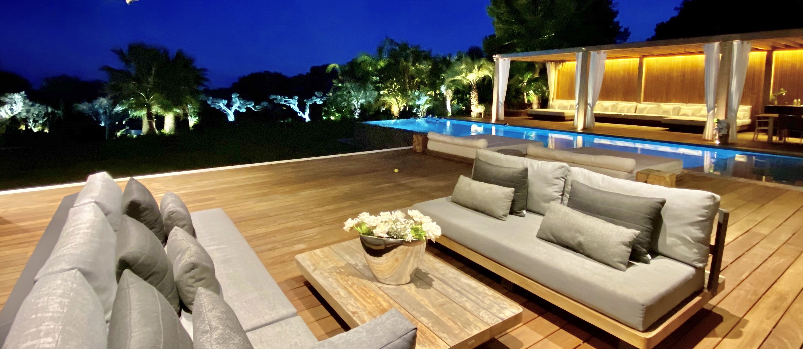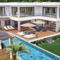 This private estate uses only the finest materials, among natural stone facades, marble bathrooms, precious wood walls, solid oak and French walnut flooring, bar onyx, teak Burma for exteriors.