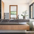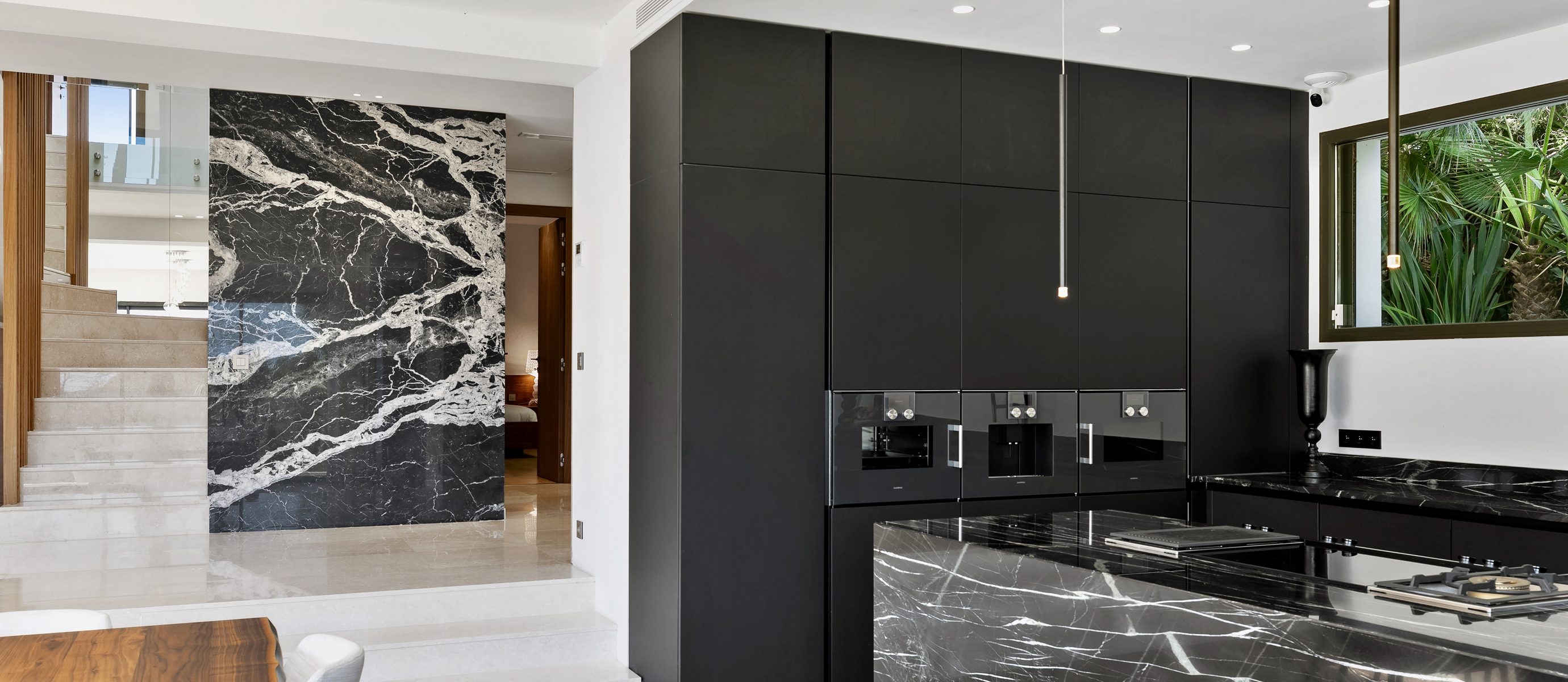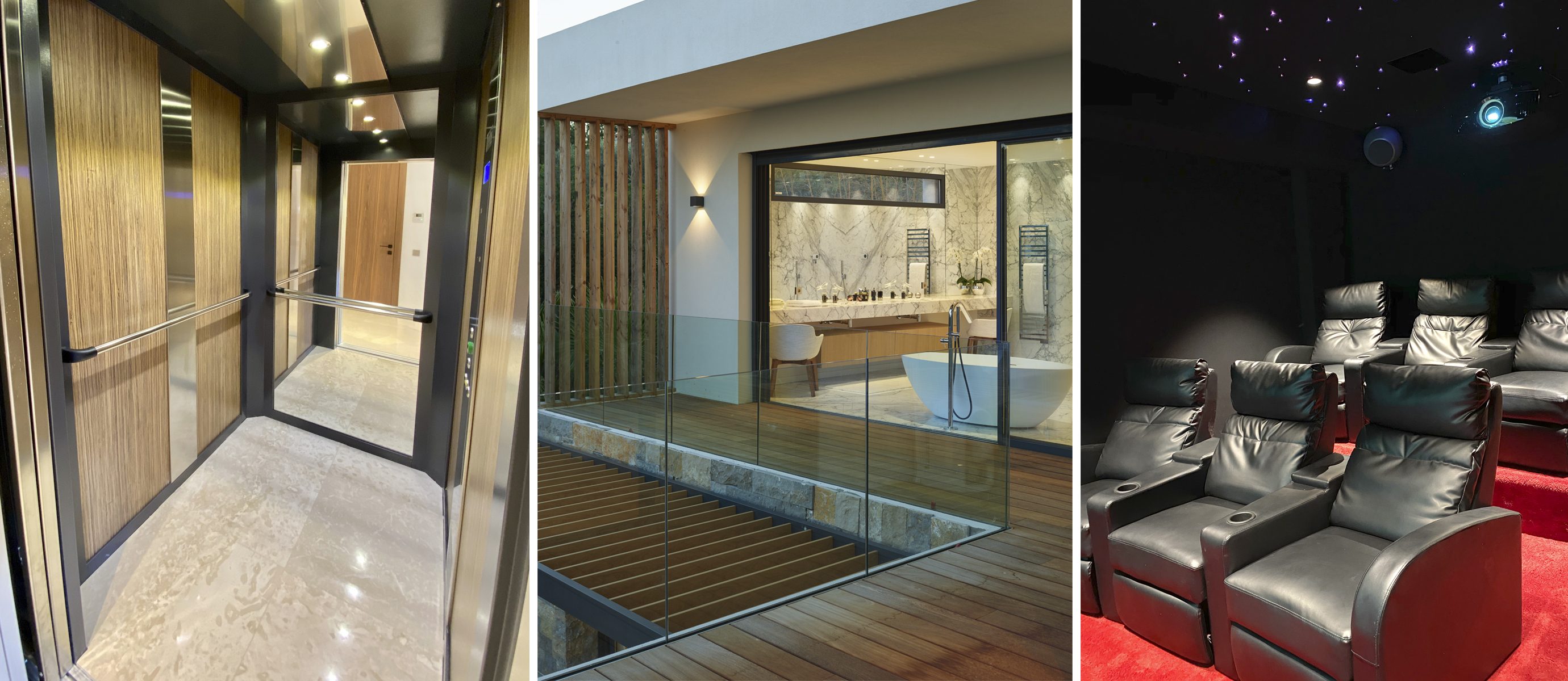 There is a Gaggenau’s gourmet kitchen, Dolby Atmos 4K movie theatre, a state-of-the-art fitness centre, and an elevator between the three floors. Every facet of the property is controllable from any corner, thanks to the most advanced KNX home automation system.