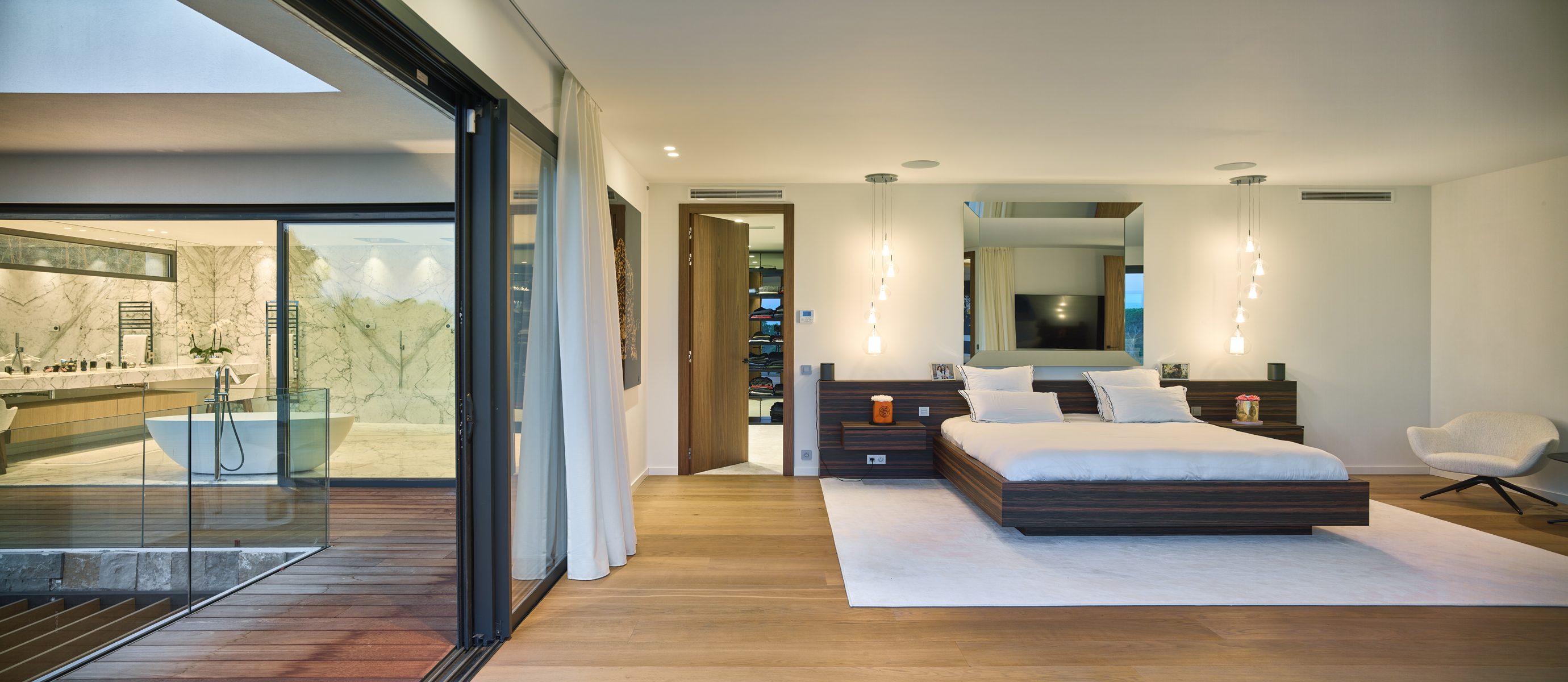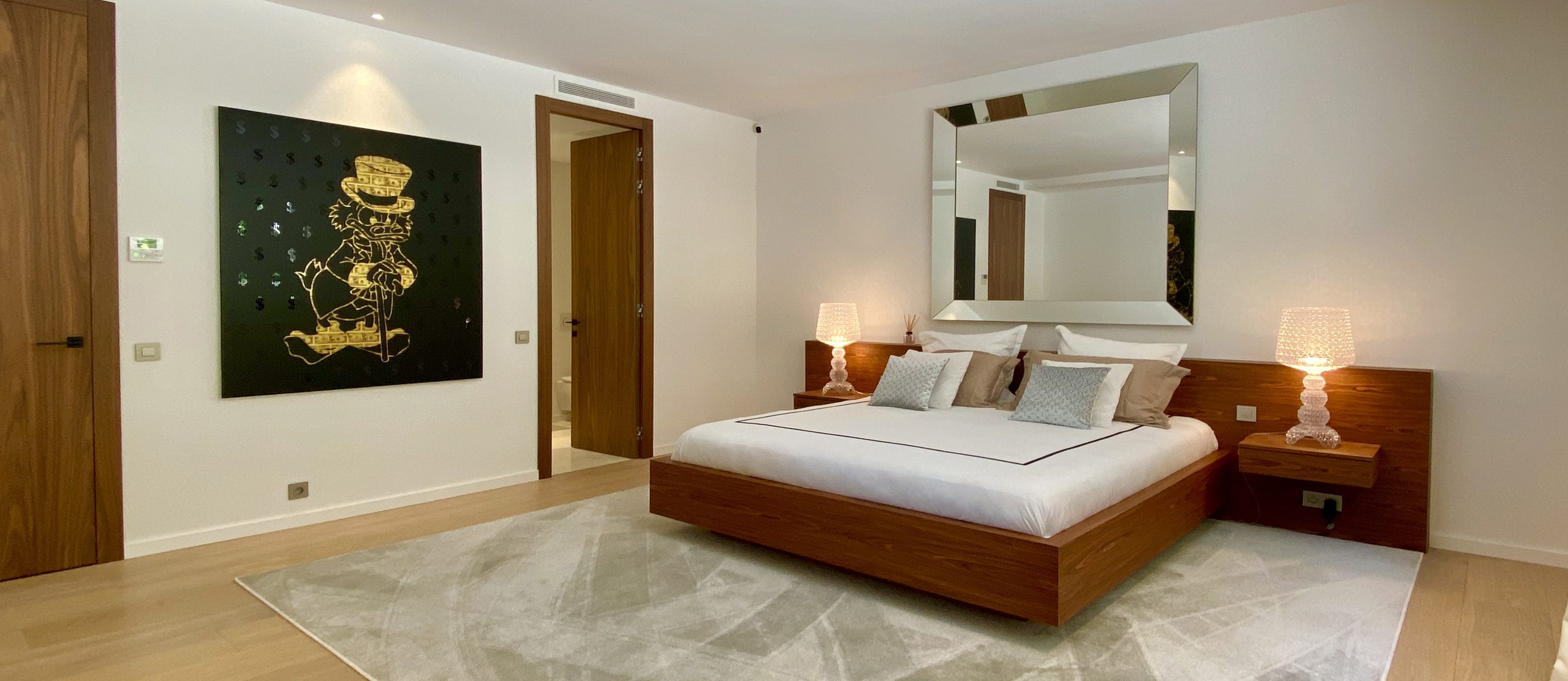 First floor. Large master bedroom with en-suite bathroom with double shower and bathtub, huge dressing room and private terrace. Two double bedrooms with en-suite bathrooms.