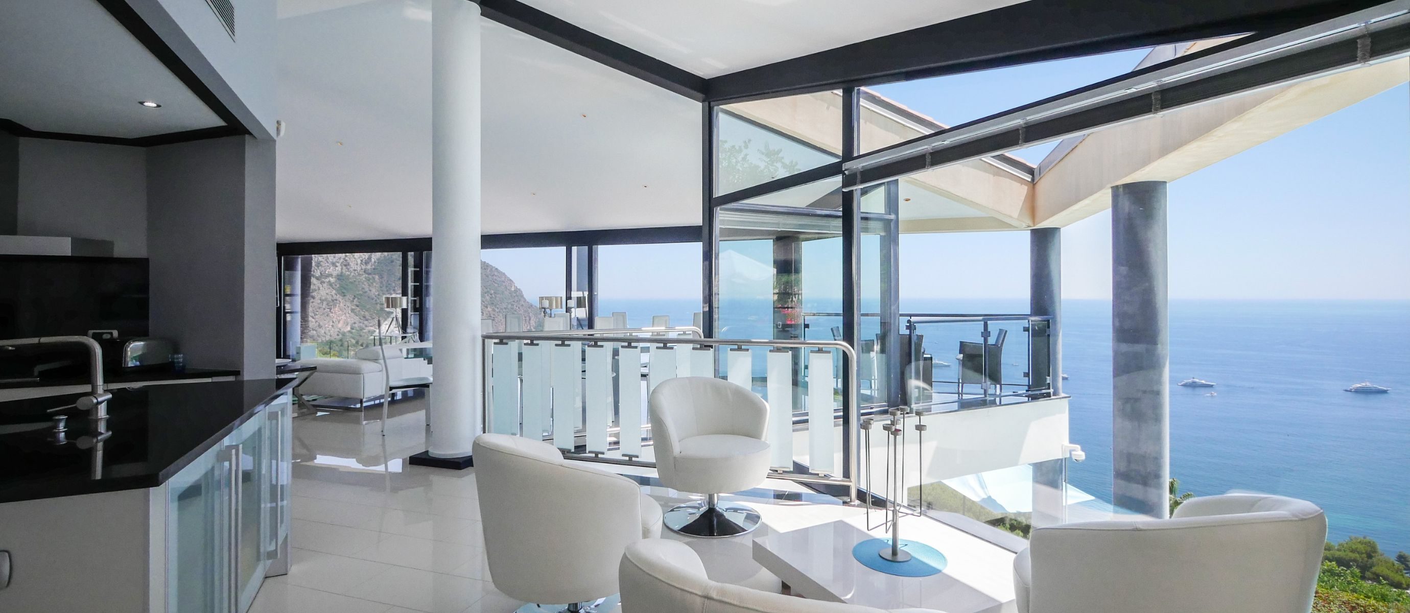 Sitting in a prime hillside position, this exquisite villa is a true jewel of the French Riviera, offering an unparalleled panoramic view over the shimmering Bay of Eze. Elegantly designed and crafted from the finest materials, this 475-square-meter residence seamlessly combines luxury with comfort, creating an idyllic retreat for those looking for peace and sophistication.
