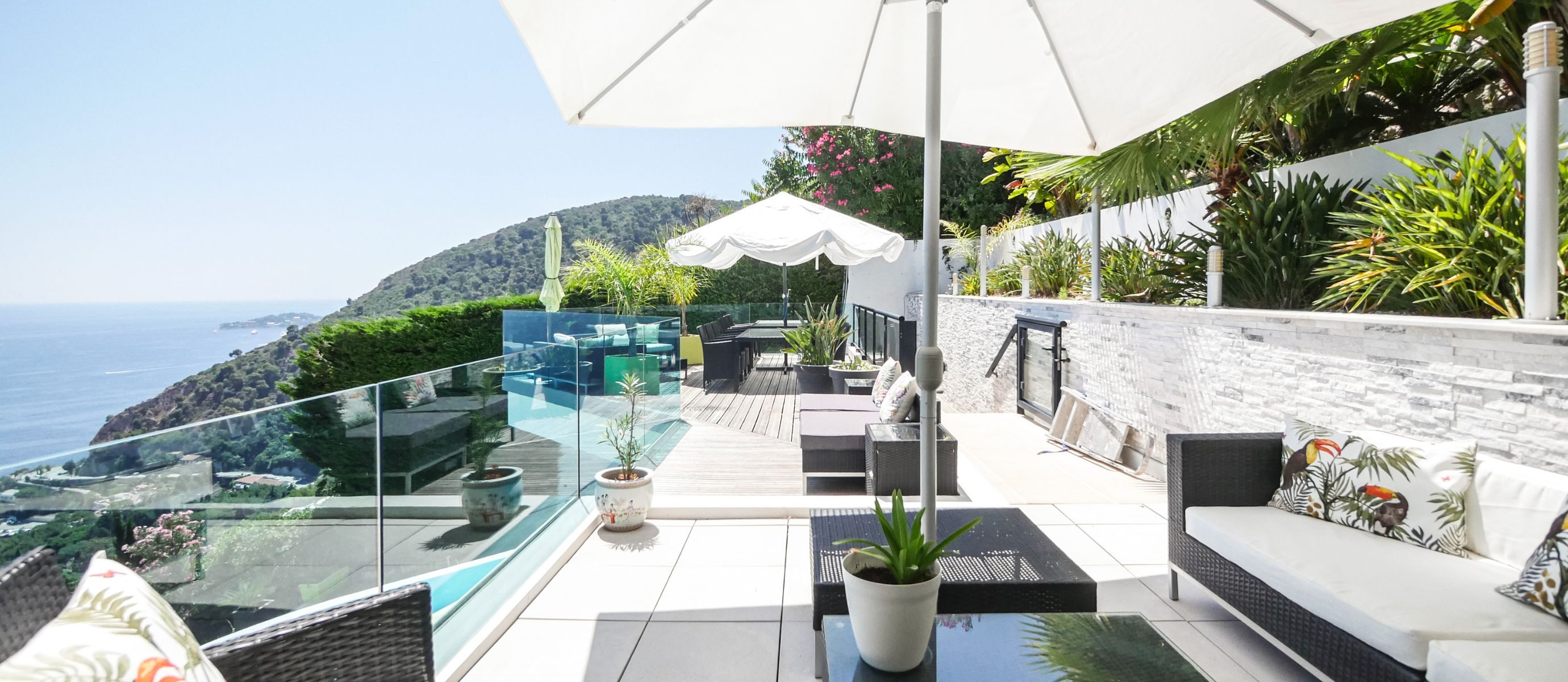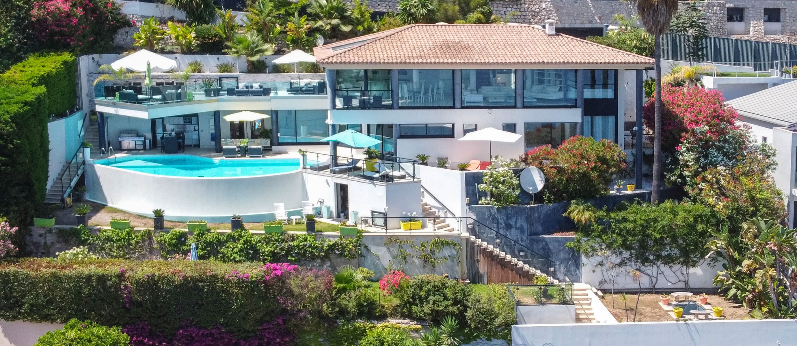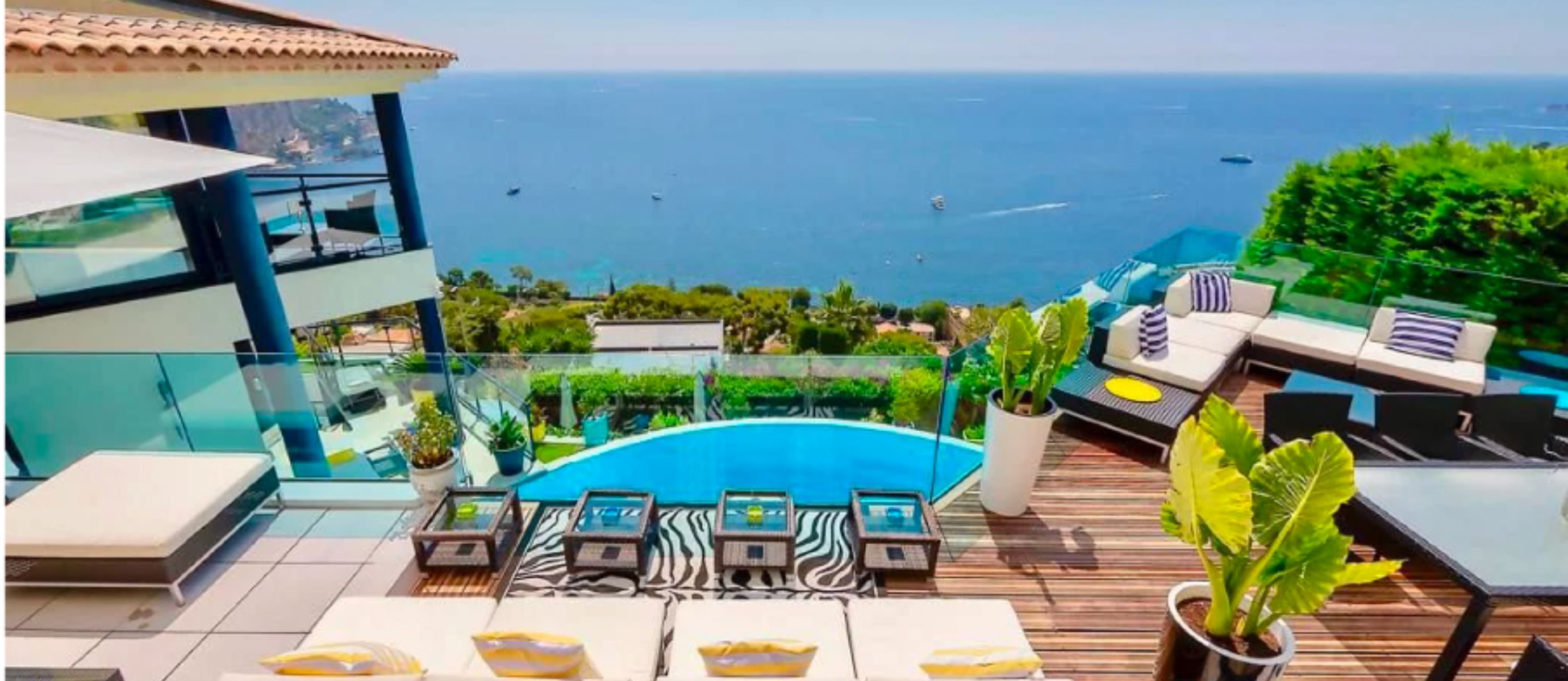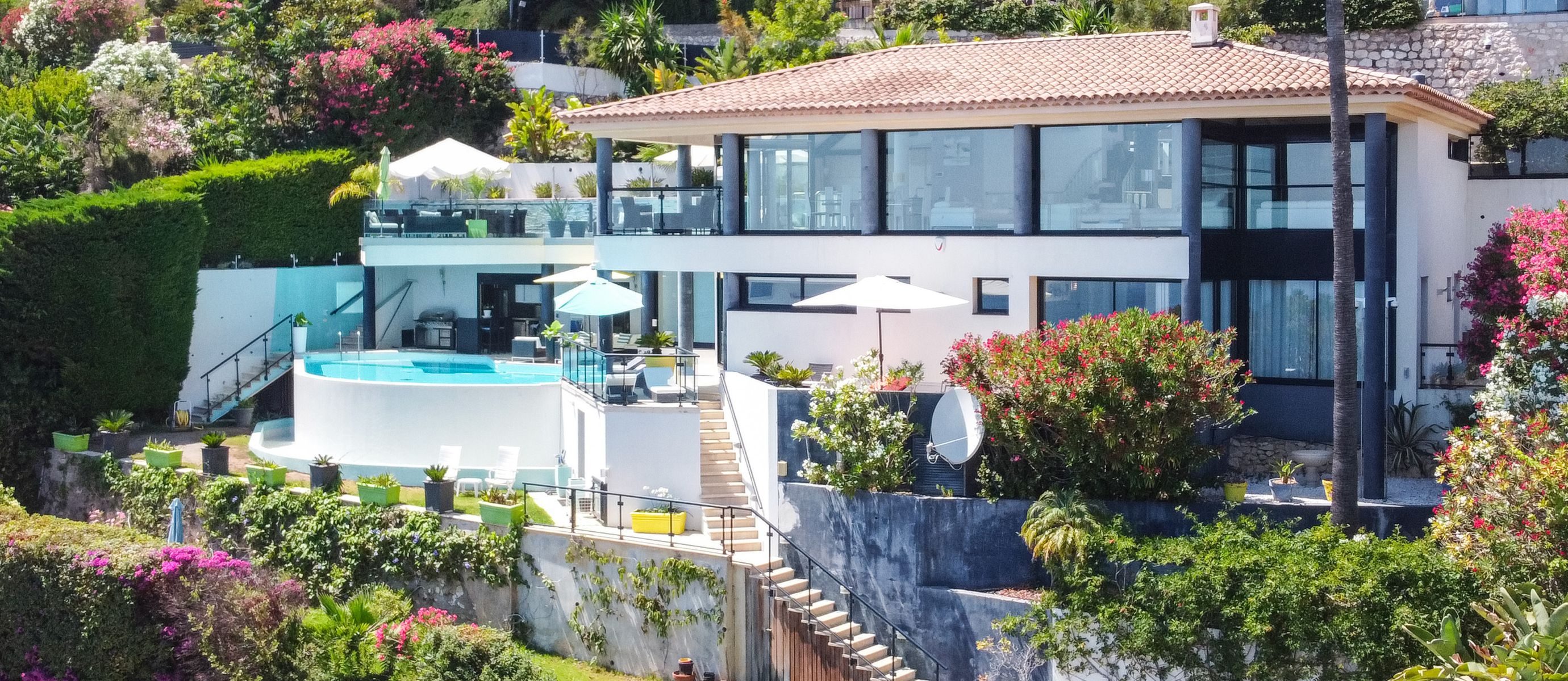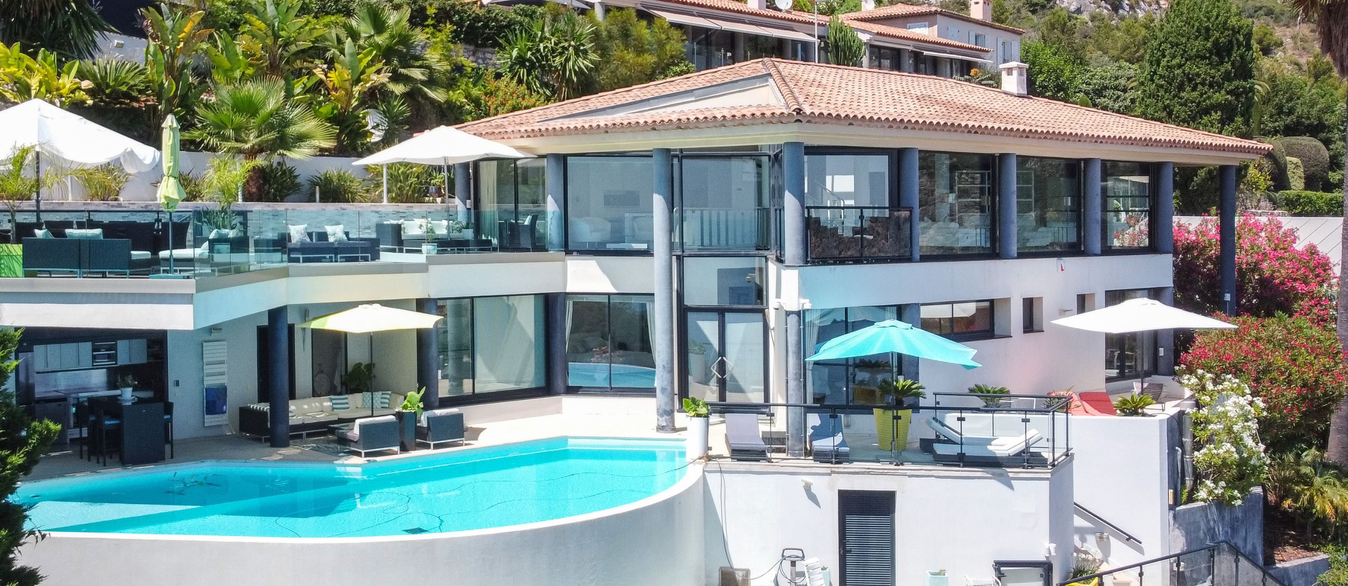 In a dominant position, this stunning villa offering breathtaking sea view over the Bay of Eze.