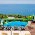 Step inside, and you’ll be greeted by an abundance of natural light streaming through expansive bay windows, casting a warm glow across the tastefully curated interiors. The villa’s open-concept layout ensures that every room enjoys breathtaking sea views, allowing you to wake up to the azure waters of the Mediterranean from dawn till dusk.