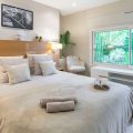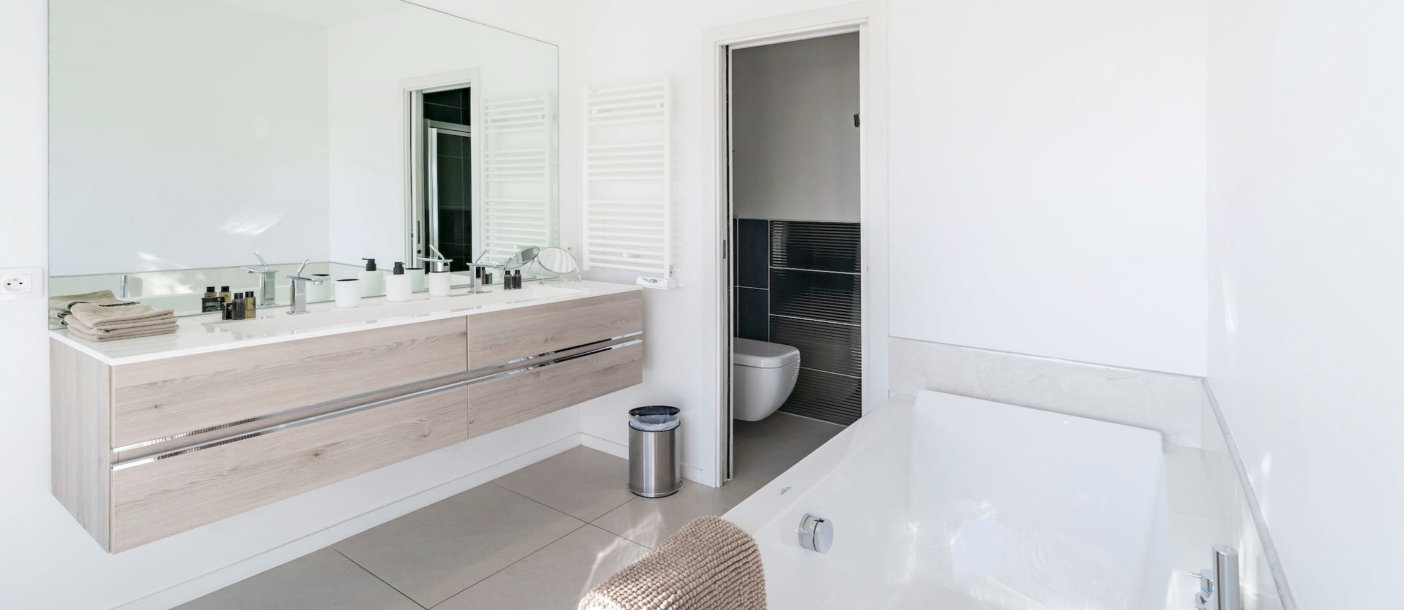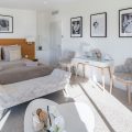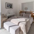 Lower garden level. Two double bedrooms (140 cms) with en-suite bathrooms. Double bedroom (160 kms) with en-suite bathroom and terrace.