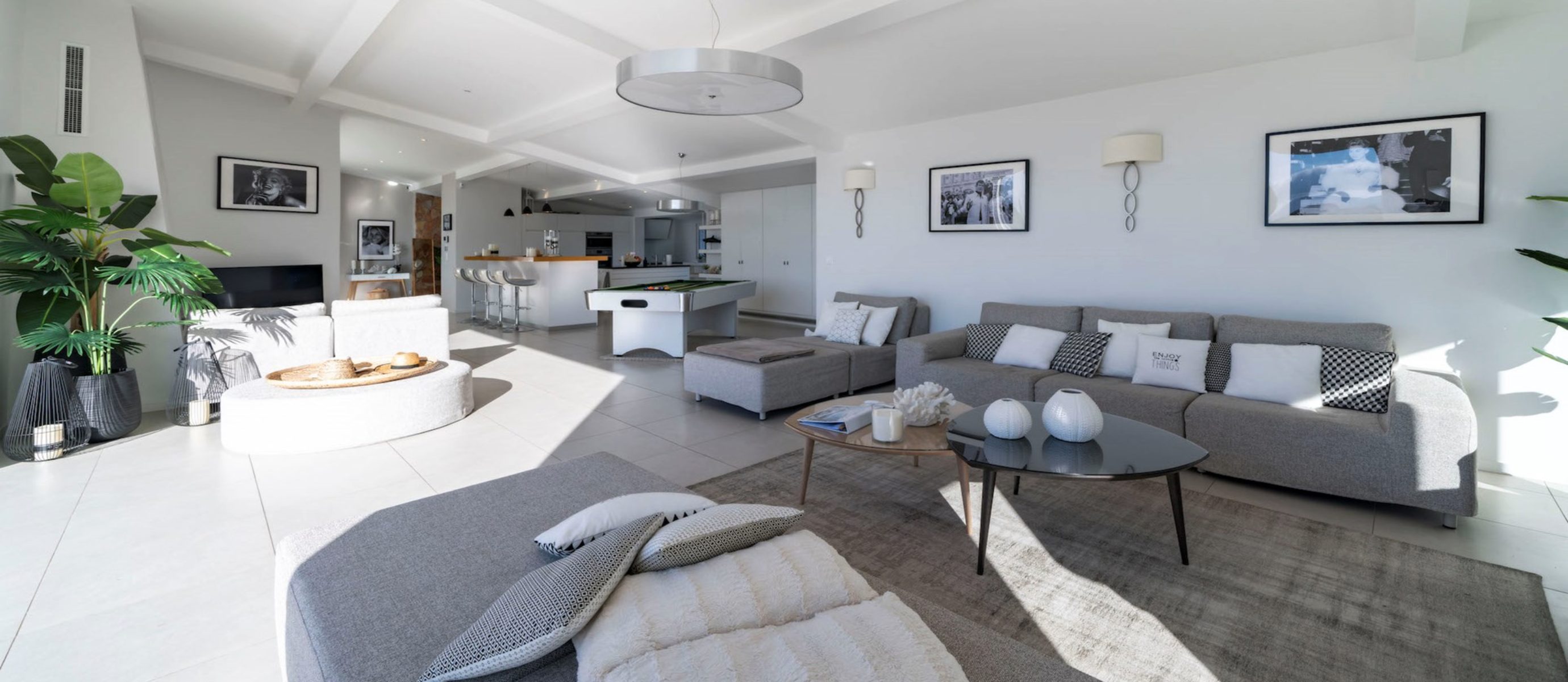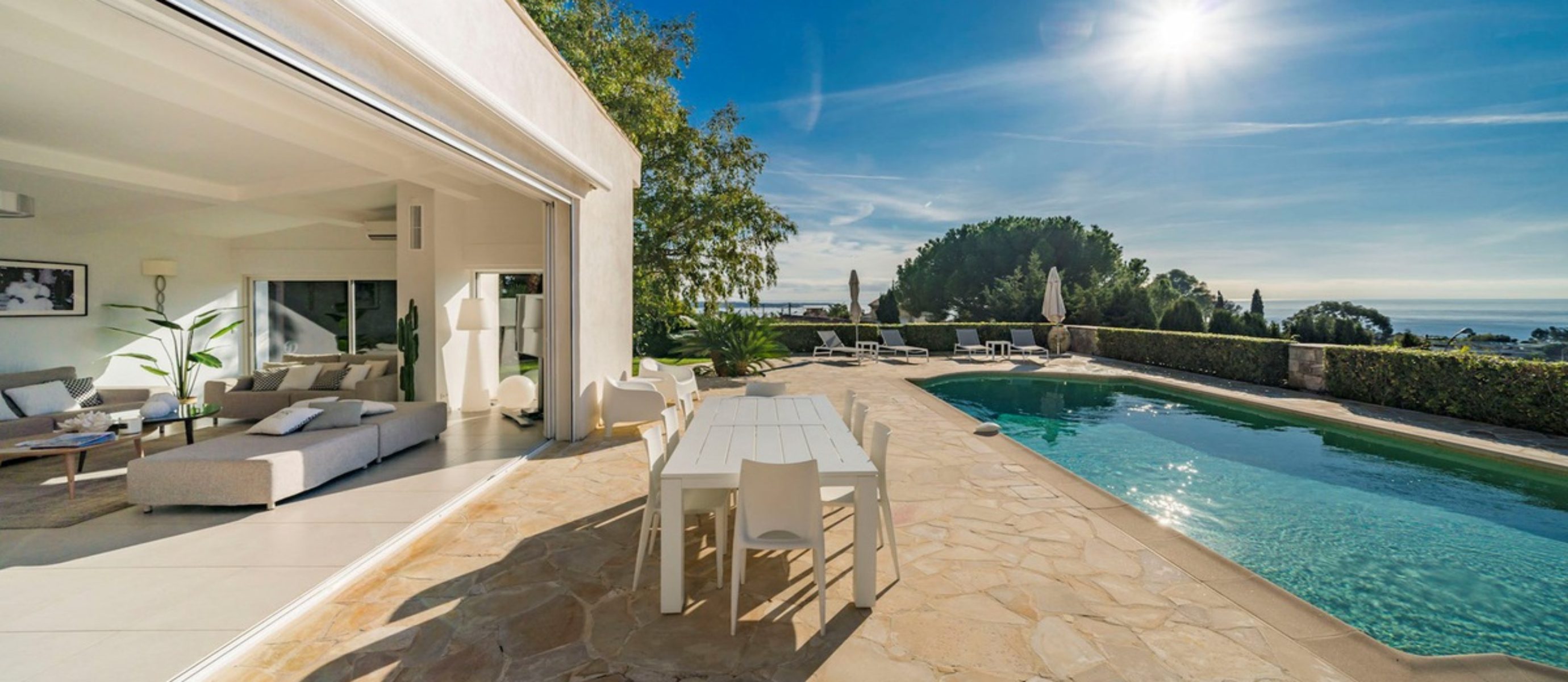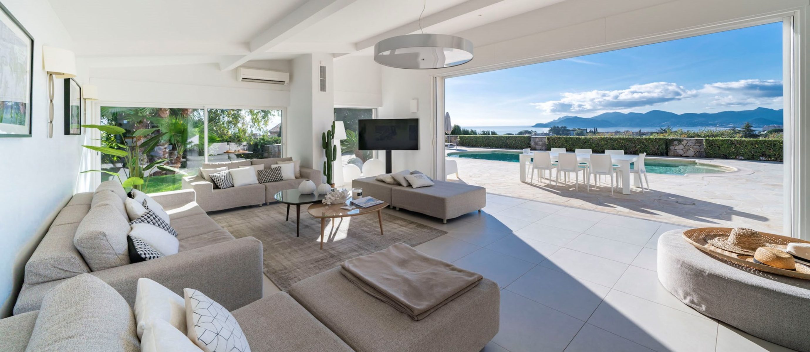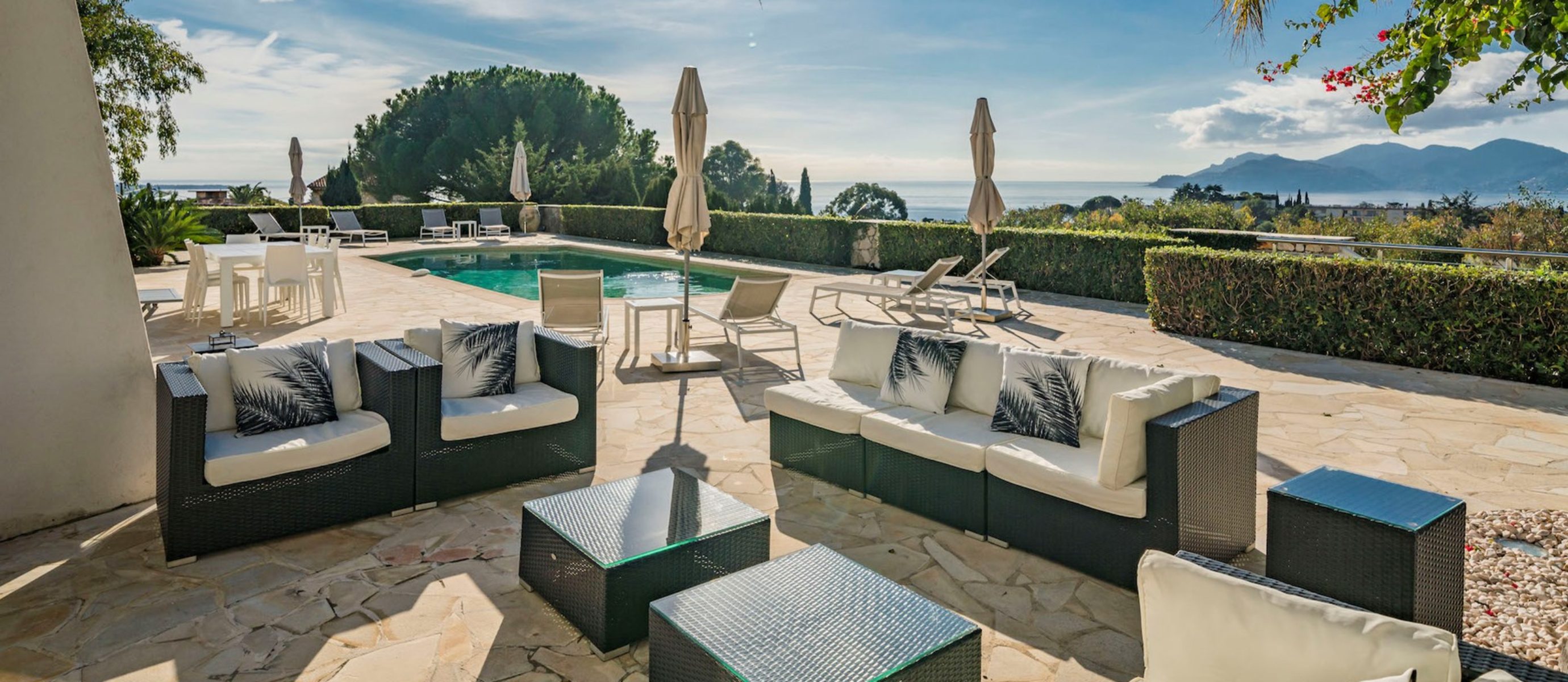 This is a wonderful property with panoramic sea views, of the Lerins islands and the Esterel mountains, a few minutes from the centre of Cannes. The villa is in a quiet area known as Les Croix des Gardes.