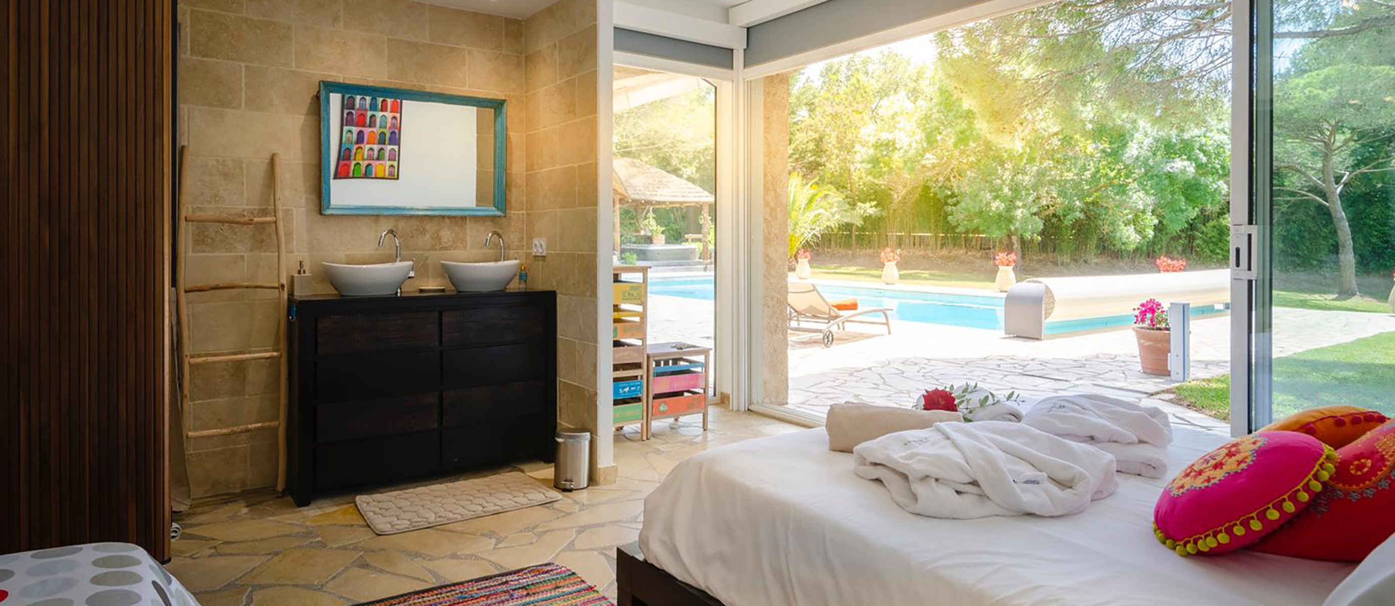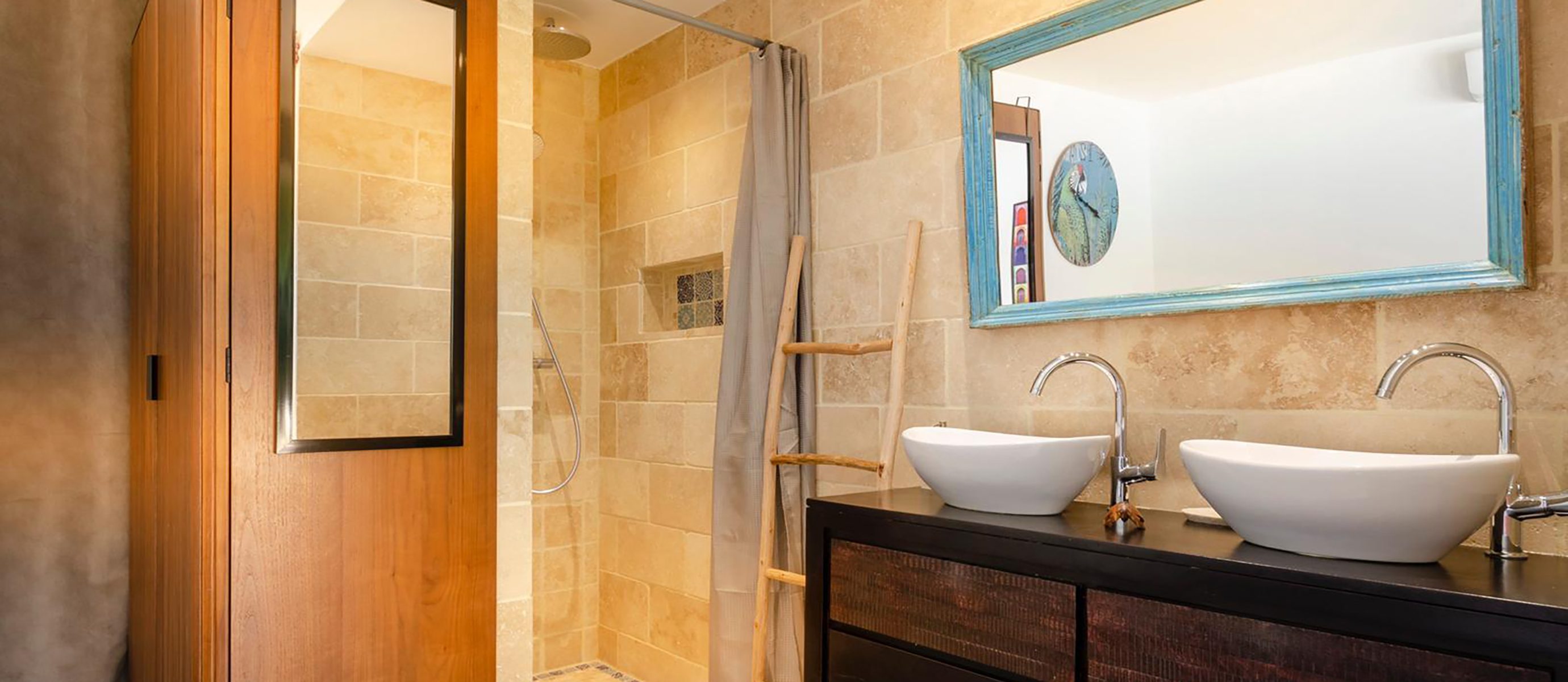 Villa L’Arena consists of 5 bedrooms and 5 bathrooms, of which one with Hammam, for 12 to 14 people. This residence also has a large master ensuite, a cosy reception with a chimney, a charming Provençal fully-equipped kitchen and a spacious dining room.