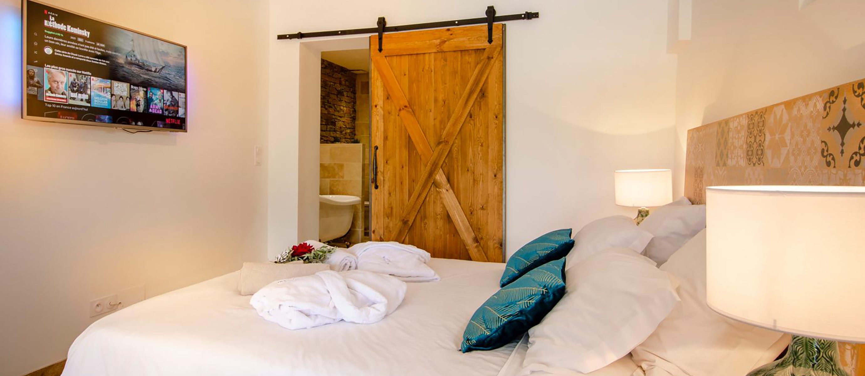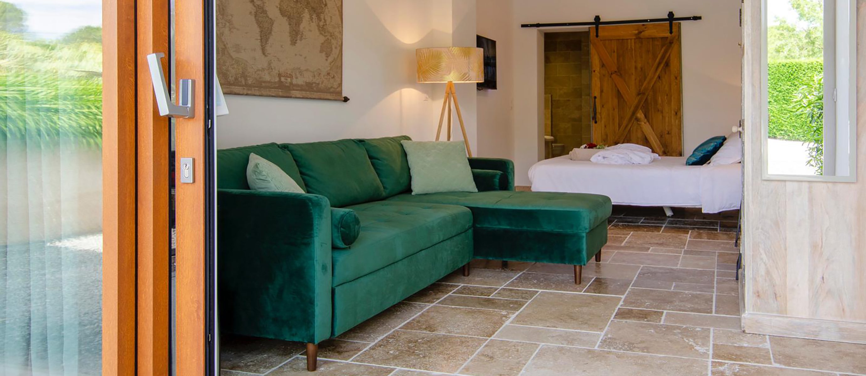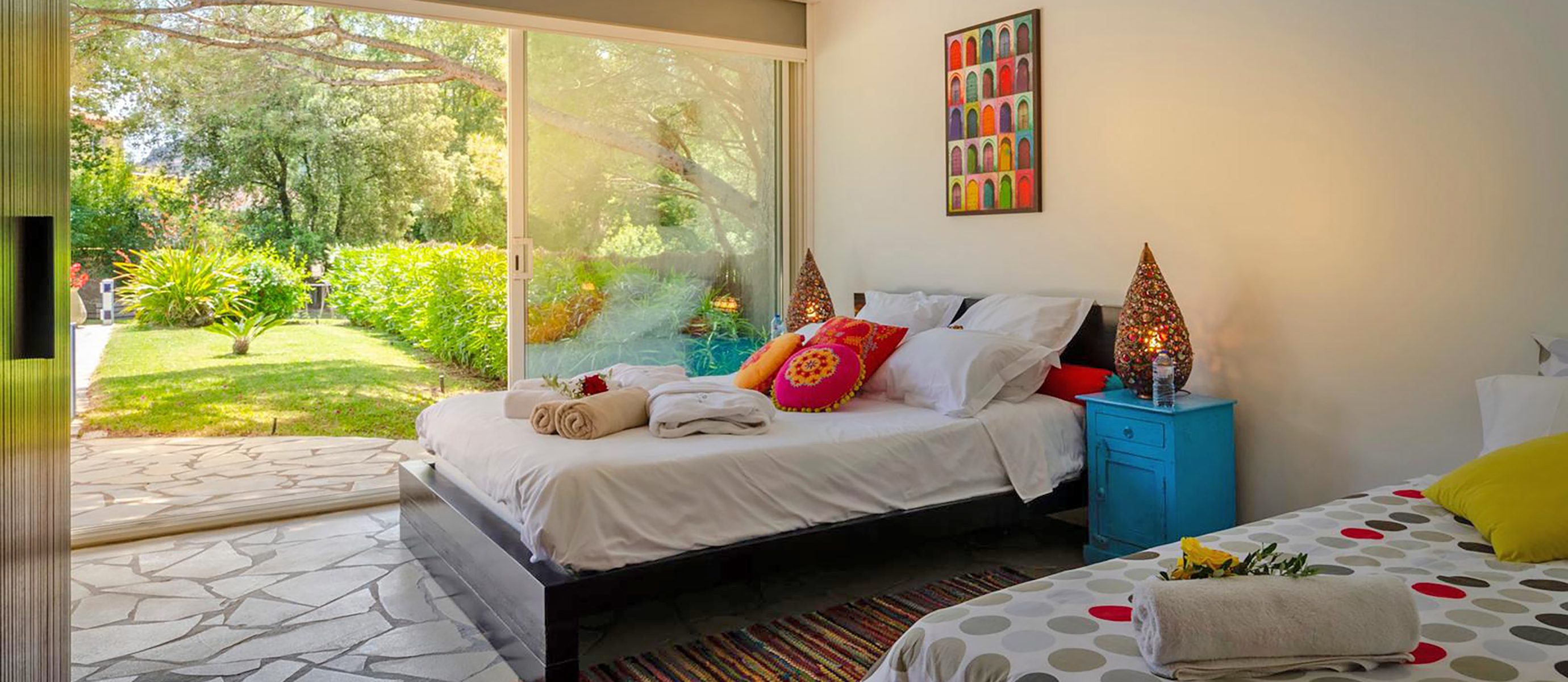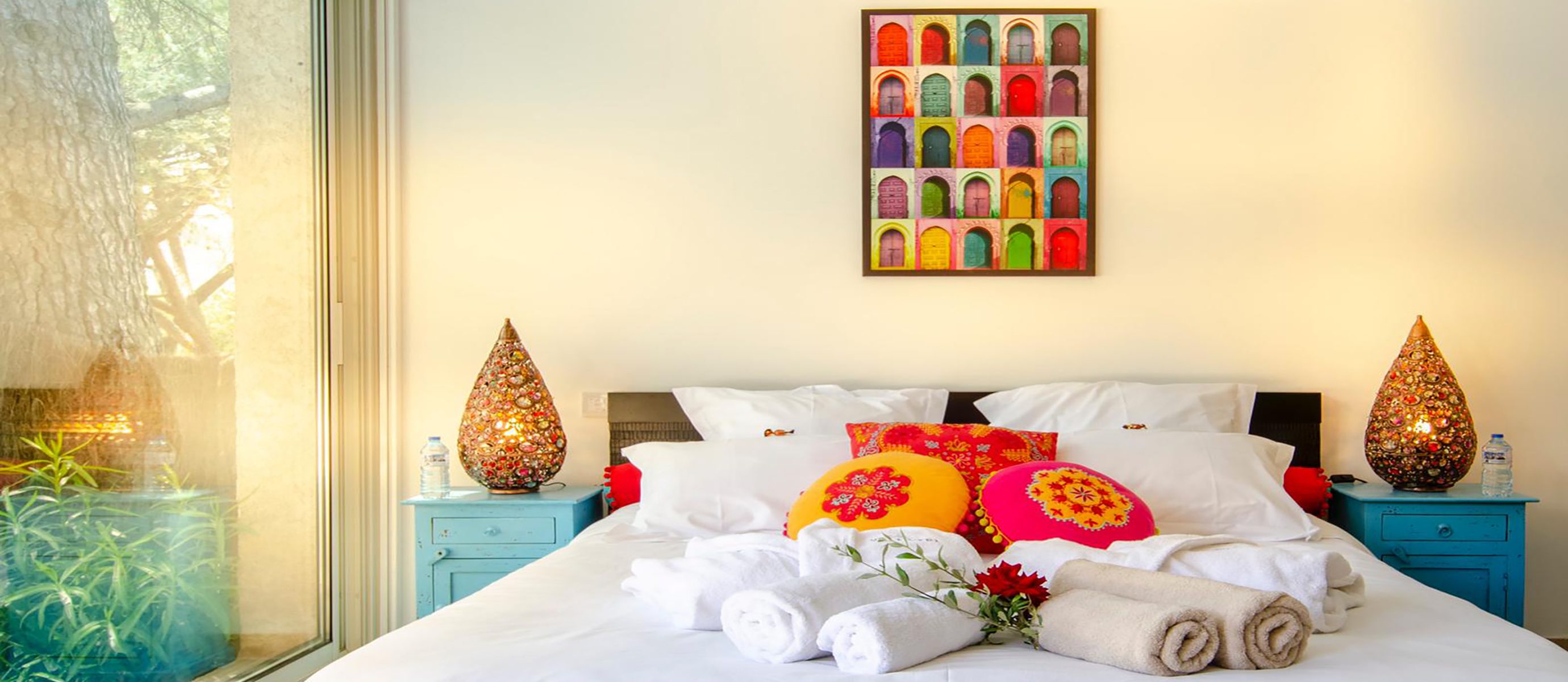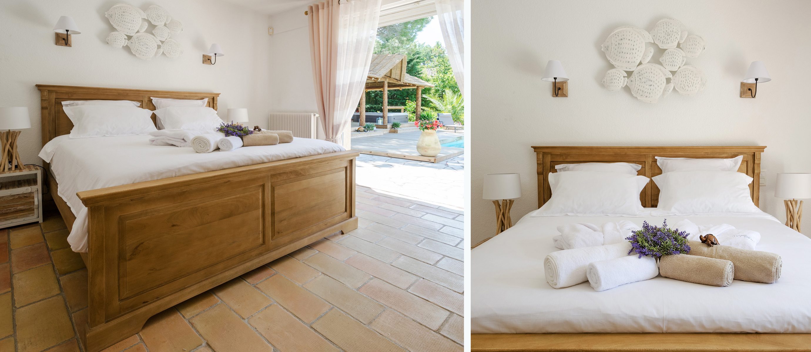 Located near Fréjus, Saint-Maxime, Saint-Raphael and Saint-Tropez, this beautiful nest is open to welcome you all year round in refined settings. Admire the plastered walls, exposed beams, solid wood furniture, and pastel and light colours.