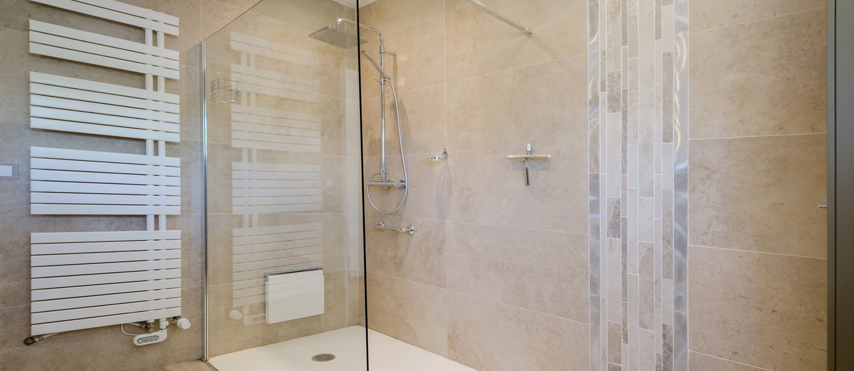 - En-suite bathroom with walk-in shower, rain shower and toilets/Radiator for drying towels/Hairdryer/Bath towels.