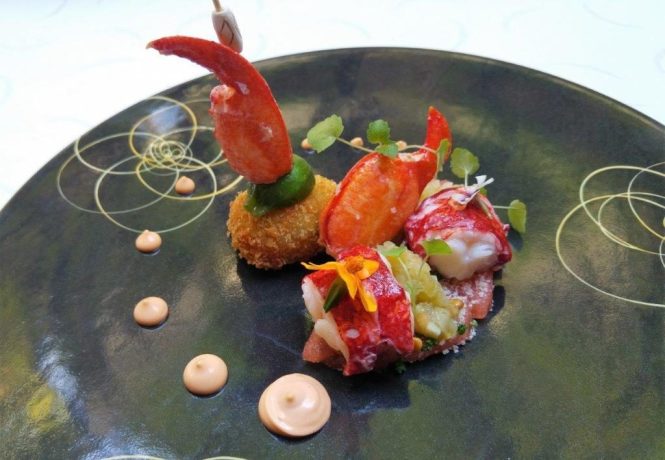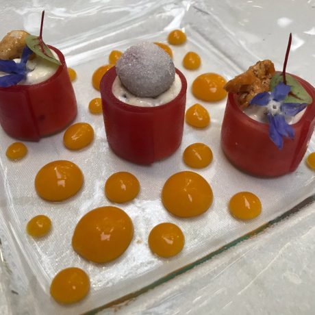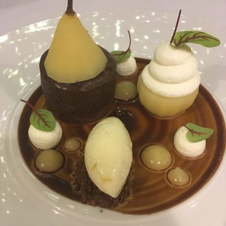 On the sweet side, before dessert, savour the « lavender crème brulée» another creation of the Chef Morisset, surprising with its freshness and its flavour, perfect before you jump in onto the others such as the ”William Pear in thin slices caramelized with cardamom served with mousse with dehydrated pear the old fashioned way and its sherbet” or “cocoa beans”